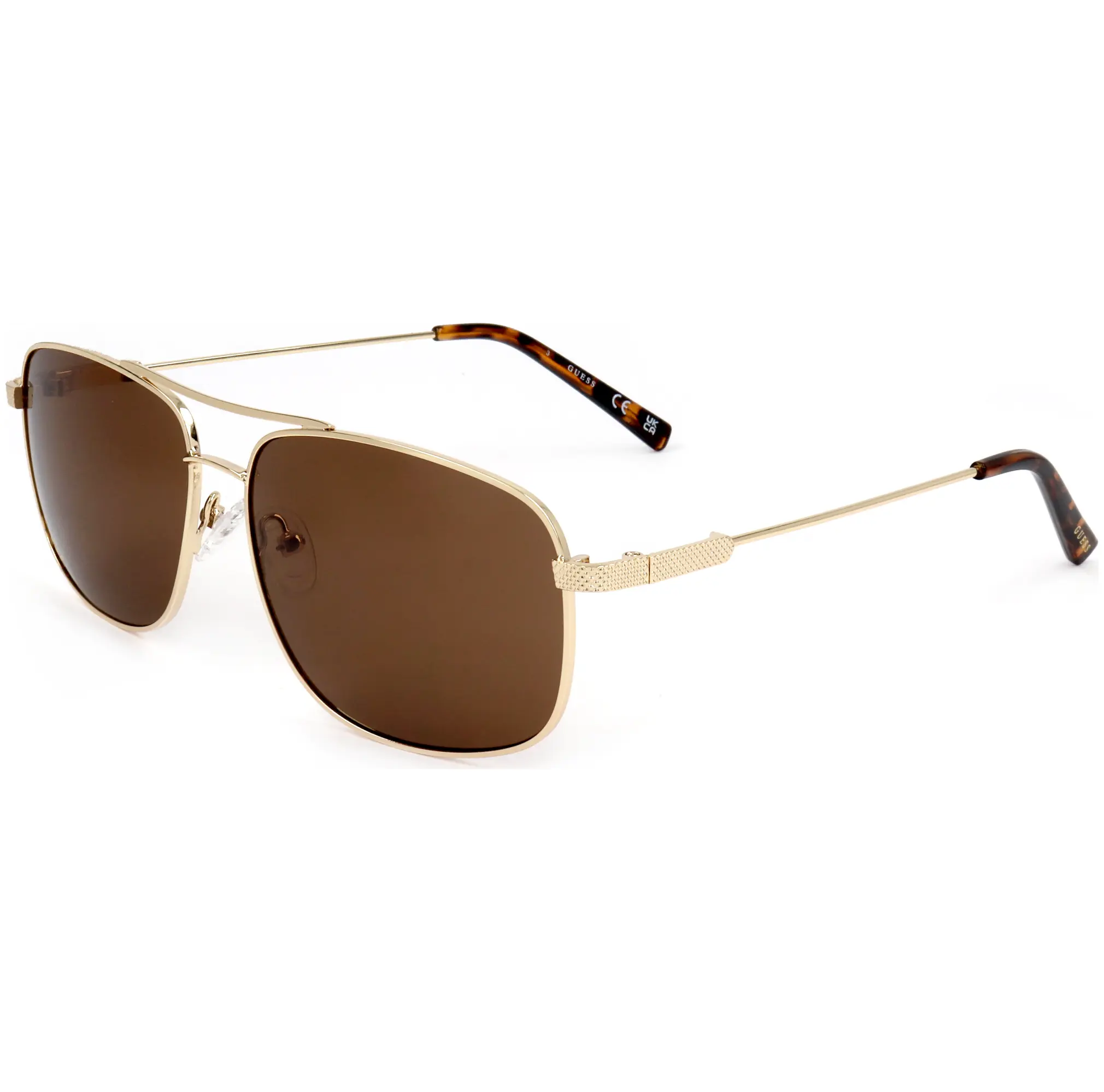 Guess Factory Men's 59 mm Sunglasses - Dimensions: 59 mm x 14 mm x 145 mm - Frame Color: Gold - Frame Shape: Aviator - Frame Material: Metal - Lens Color: Brown - 100% UV Protection, Non-Polarized