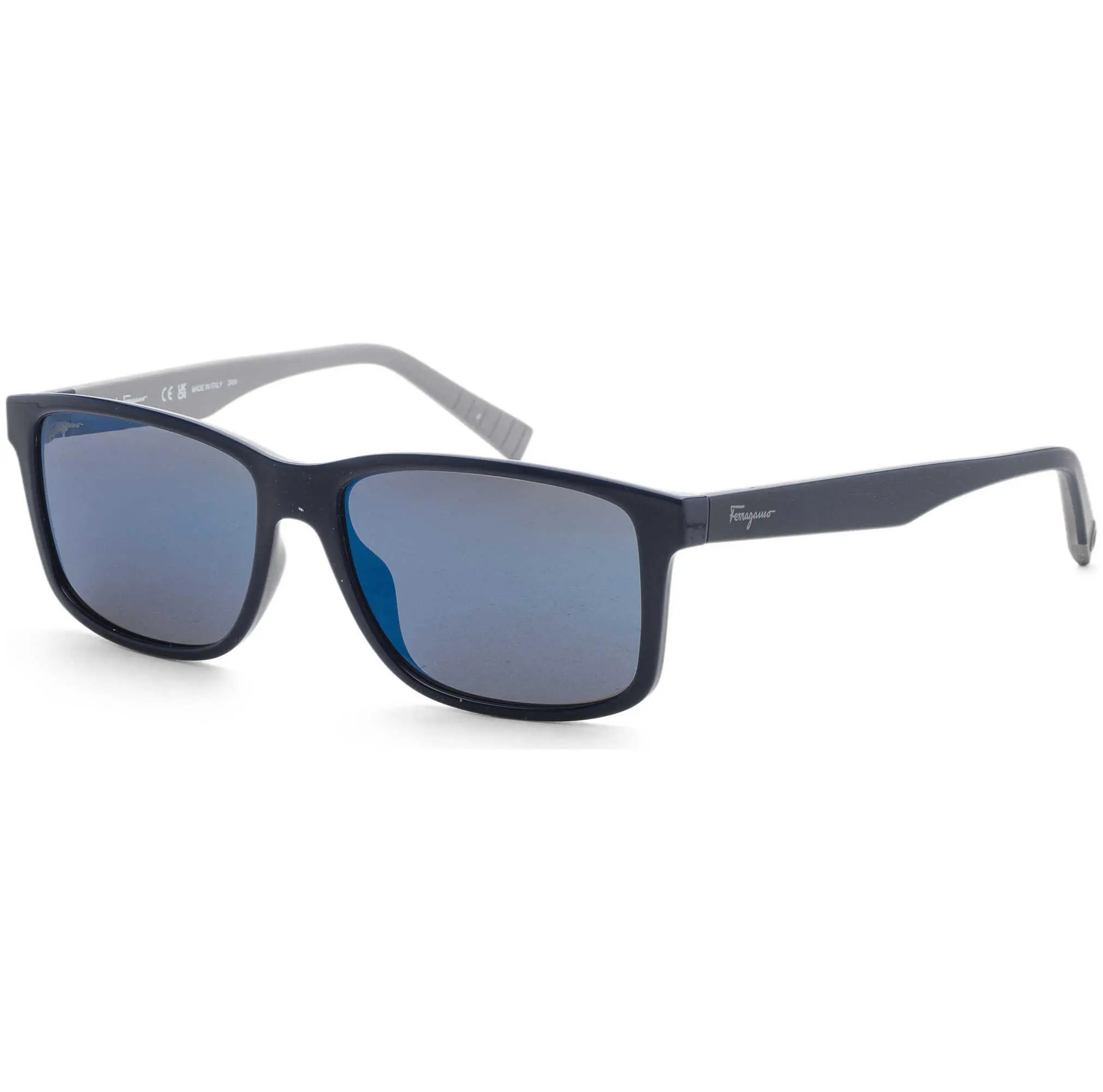 Ferragamo Fashion Men's 57 mm Sunglasses - Dimensions: 57 mm x 15 mm x 150 mm - Frame Color: Blue and Grey - Frame Shape: Aviator - Frame Material: Plastic - Lens Color: Grey - 100% UV Protection, Non-Polarized