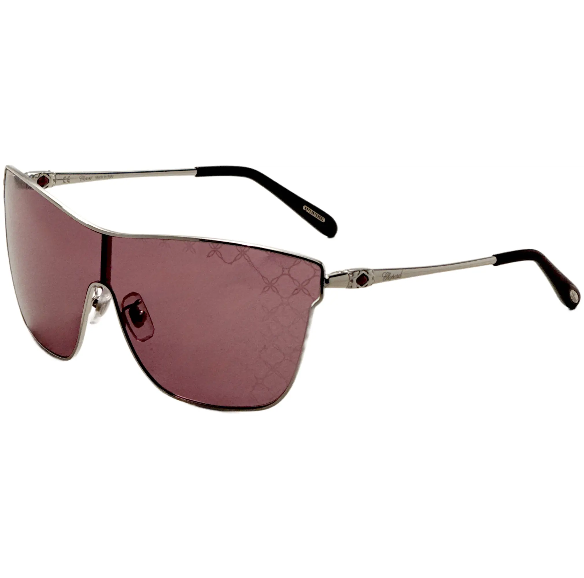 Chopard Women's 99 mm Sunglasses - Dimensions: 99 mm x 1 mm x 135 mm - Frame Color: Silver - Frame Shape: Shield - Frame Material: Metal - Lens Color: Violet Mirror - 100% UV Protection, Non-Polarized