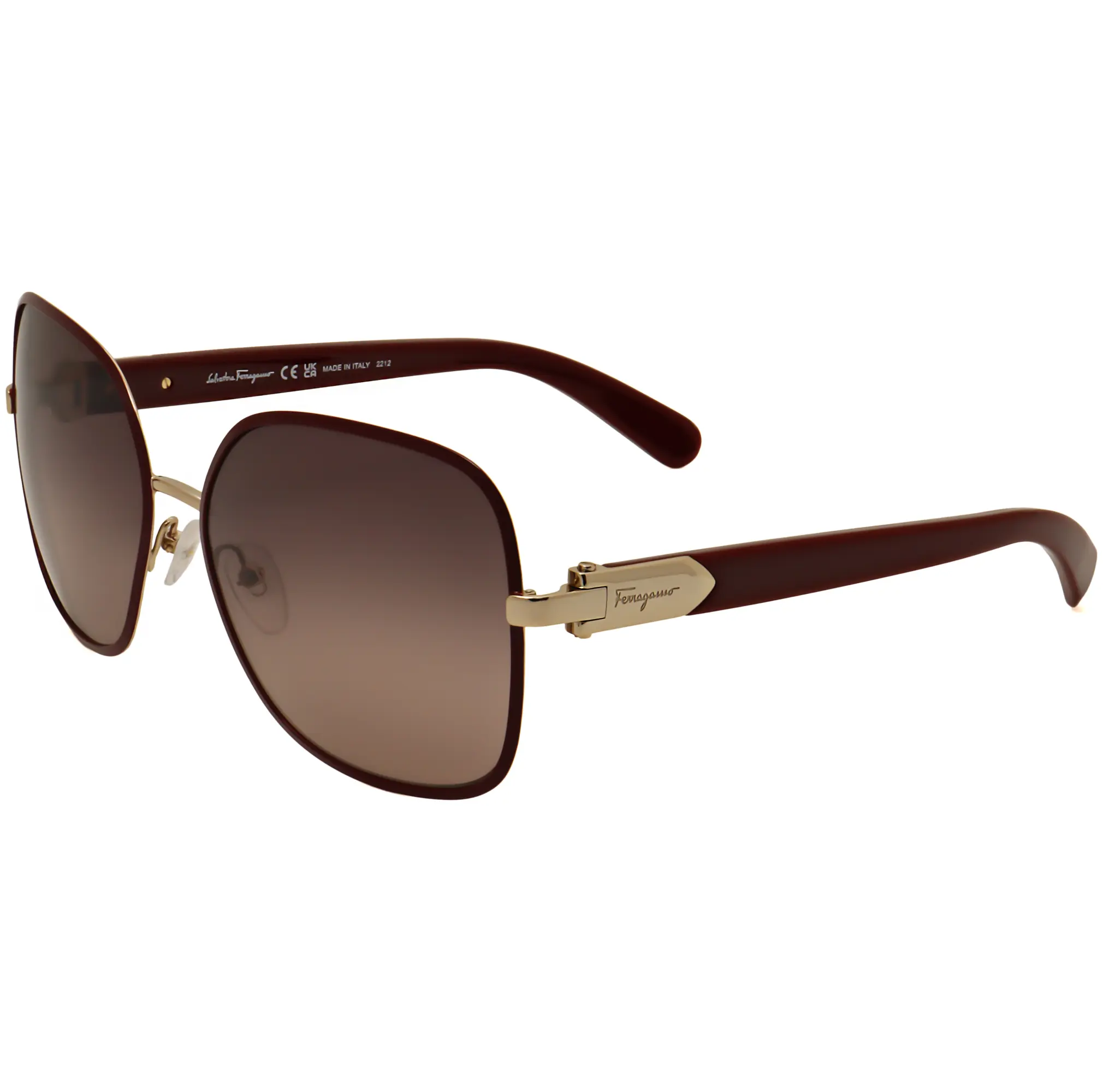 Ferragamo Fashion Women's 59 mm Sunglasses - Dimensions: 59 mm x 16 mm x 135 mm - Frame Color: Red - Frame Shape: Square - Frame Material: Metal - Lens Color: Bordeaux Gradient - 100% UV Protection, Non-Polarized