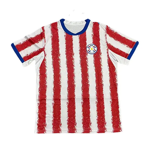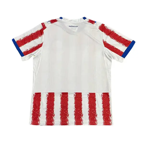 Inspired by Paraguay’s iconic red soil and football heritage, this home jersey features the classic red-and-white vertical stripes with a unique vintage texture. The royal blue collar and cuffs highlight the national colours. Designed with dryCELL moisture-wicking technology, it keeps you cool, dry and comfortable during matches or daily wear. The APF crest logo show pride for the Paraguayan national team, making it perfect for fans, players and collectors.