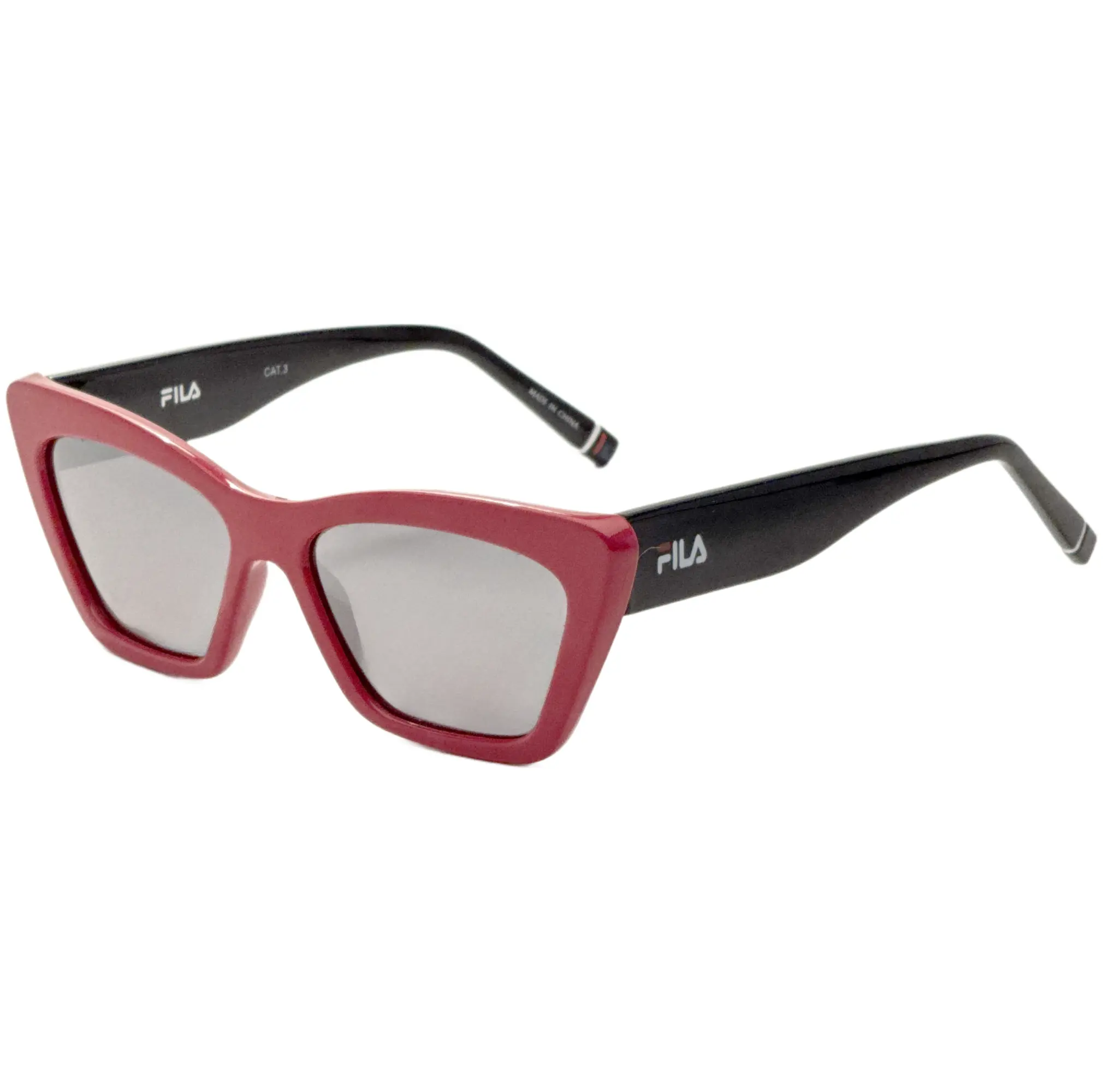 Fila Unisex 55 mm Sunglasses - Dimensions: 55 mm x 17 mm x 140 mm - Frame Color: Red - Frame Shape: Square - Frame Material: Plastic - Lens Color: Silver Flash - 100% UV Protection, Non-Polarized