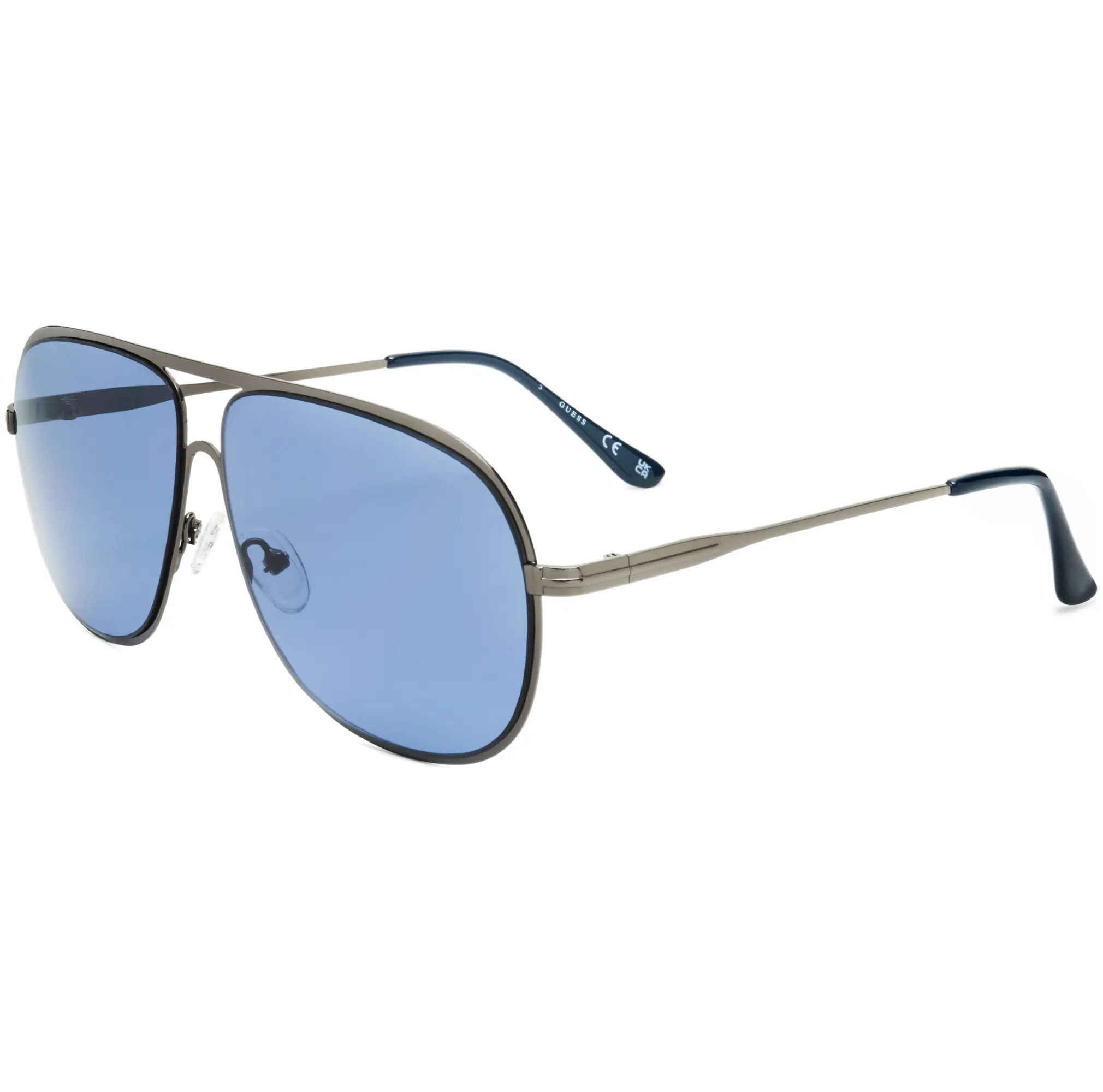 Guess Unisex 60 mm Sunglasses - Dimensions: 60 mm x 12 mm x 140 mm - Frame Color: Shiny Gunmetal - Frame Shape: Pilot - Frame Material: Metal - Lens Color: Blue - 100% UV Protection,