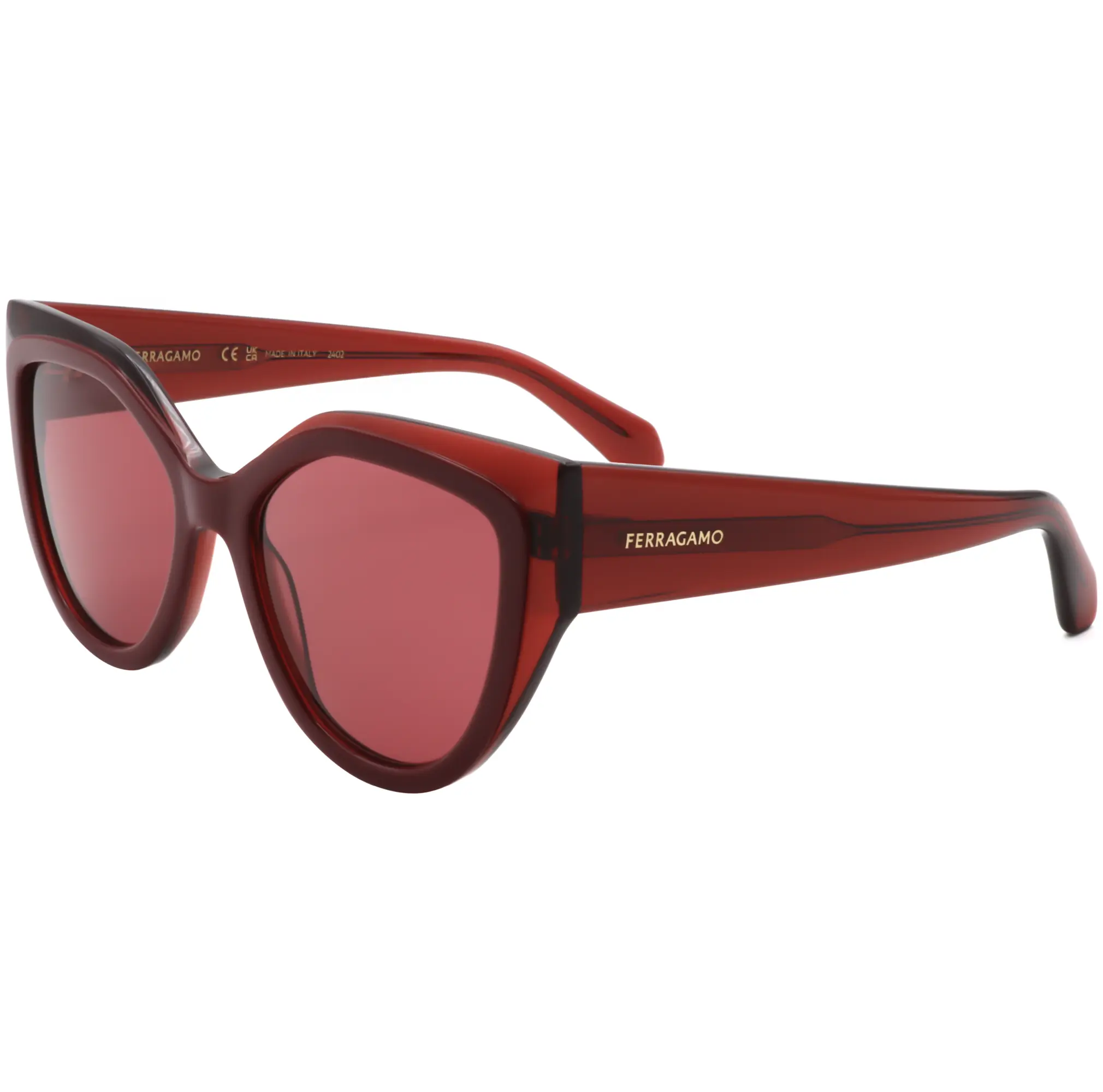 Ferragamo Women's 53 mm Sunglasses - Dimensions: 53 mm x 18 mm x 140 mm - Frame Color: Transparent Burgundy - Frame Shape: Cat-Eye - Frame Material: Acetate - Lens Color: Burgundy - 100% UV Protection, Non-Polarized