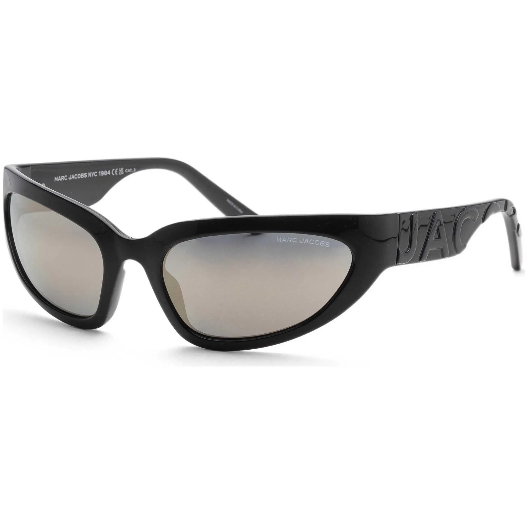 Marc Jacobs Women's 61 mm Sunglasses - Dimensions: 61 mm x 20 mm x 125 mm - Frame Color: Black Grey - Frame Shape: Wrap - Frame Material: Plastic - Lens Color: Grey Bronze Mirror - 100% UV Protection, Non-Polarized