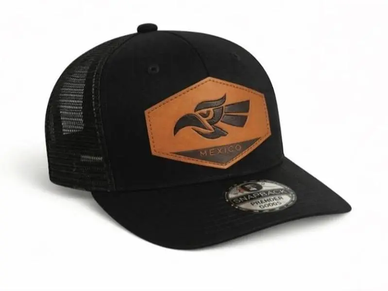 Rep your roots in STYLE. This all-black trucker hat is clean, bold, and hits hard with a hexagon leather patch featuring a laser-engraved Mexican eagle and "MEXICO" script underneath.