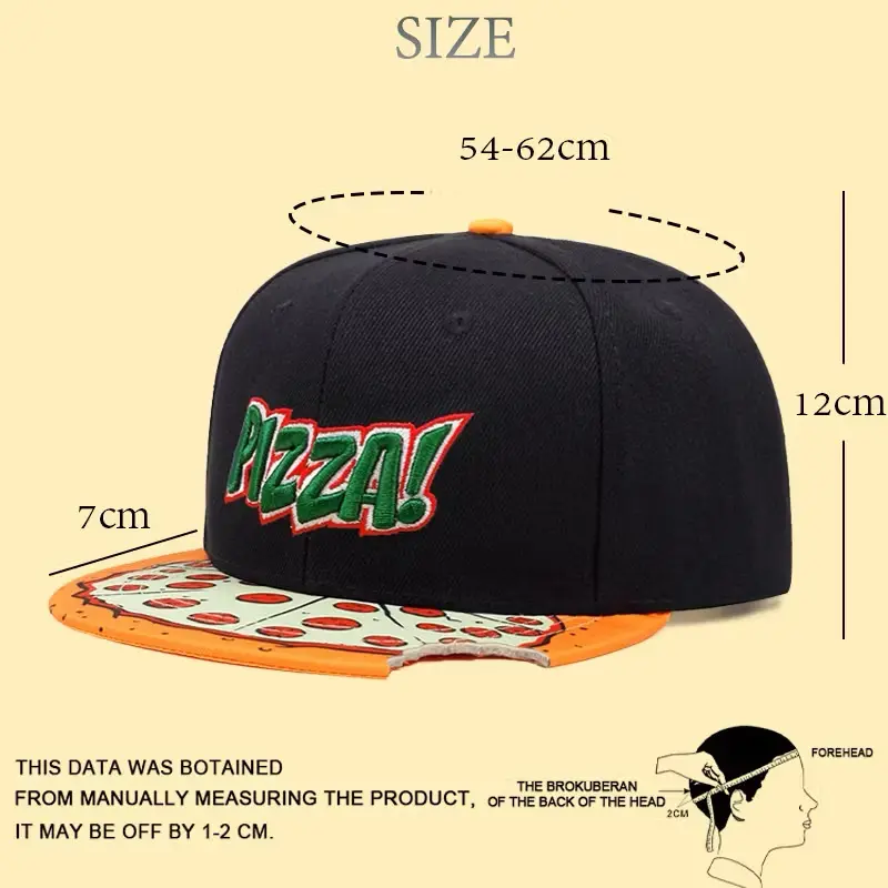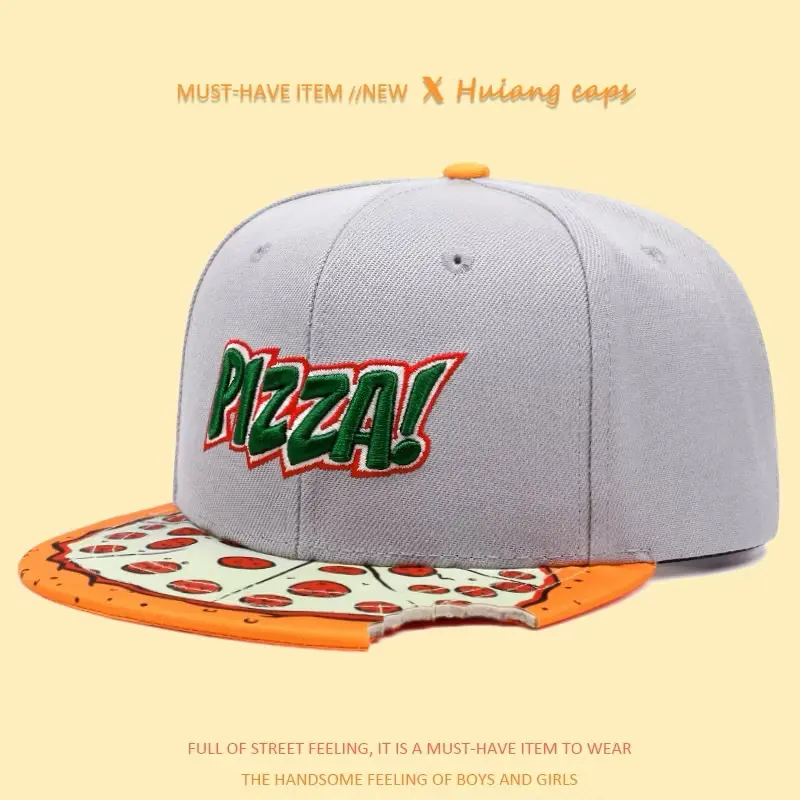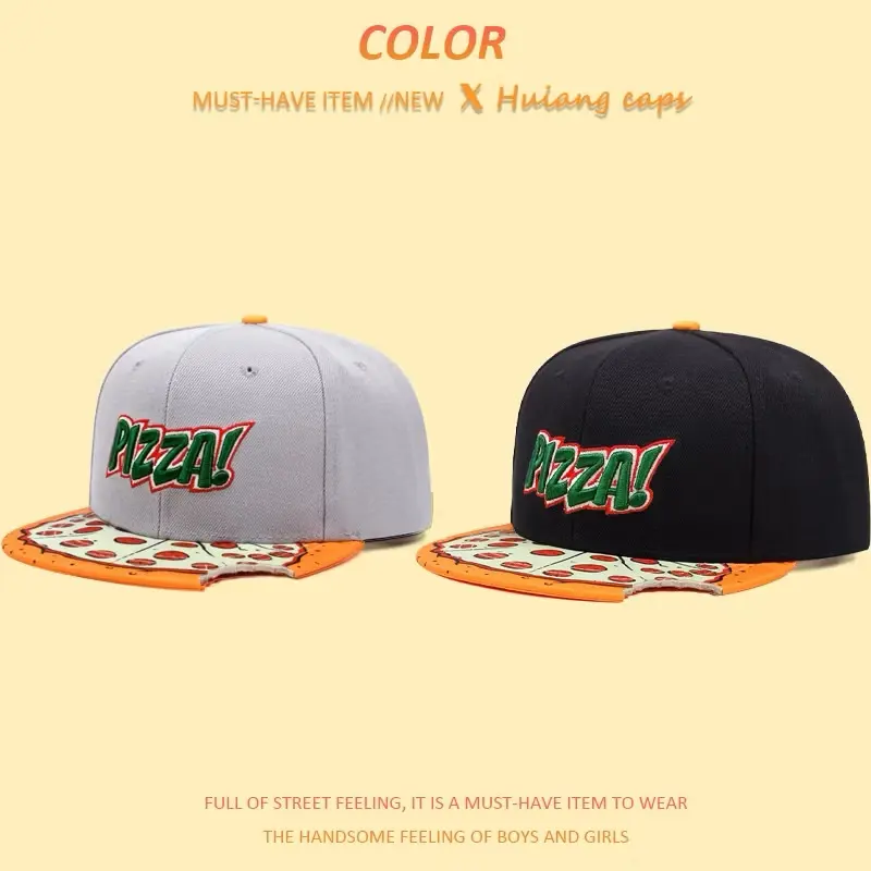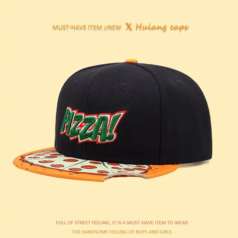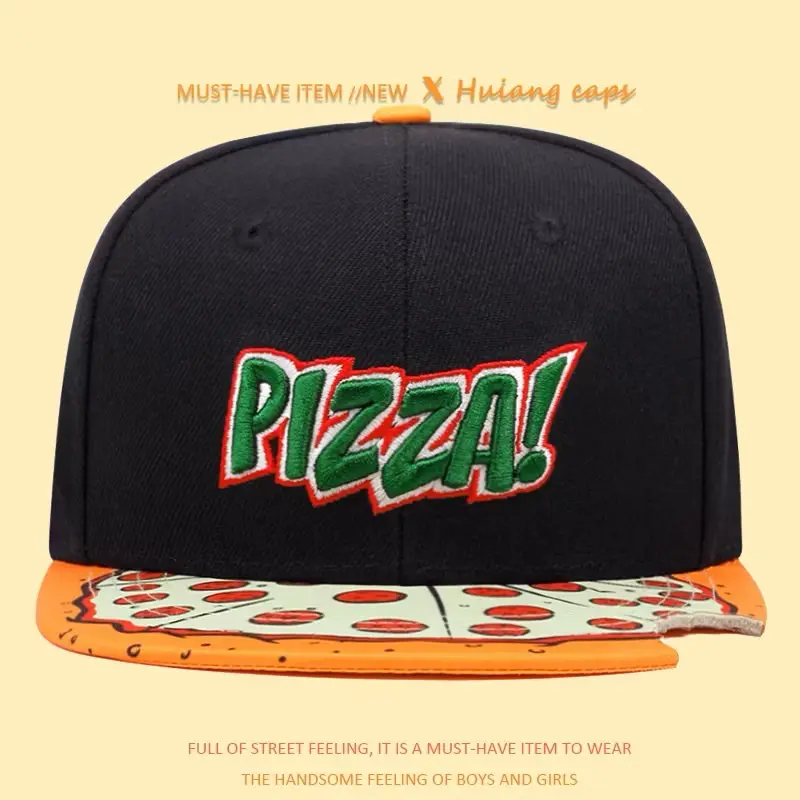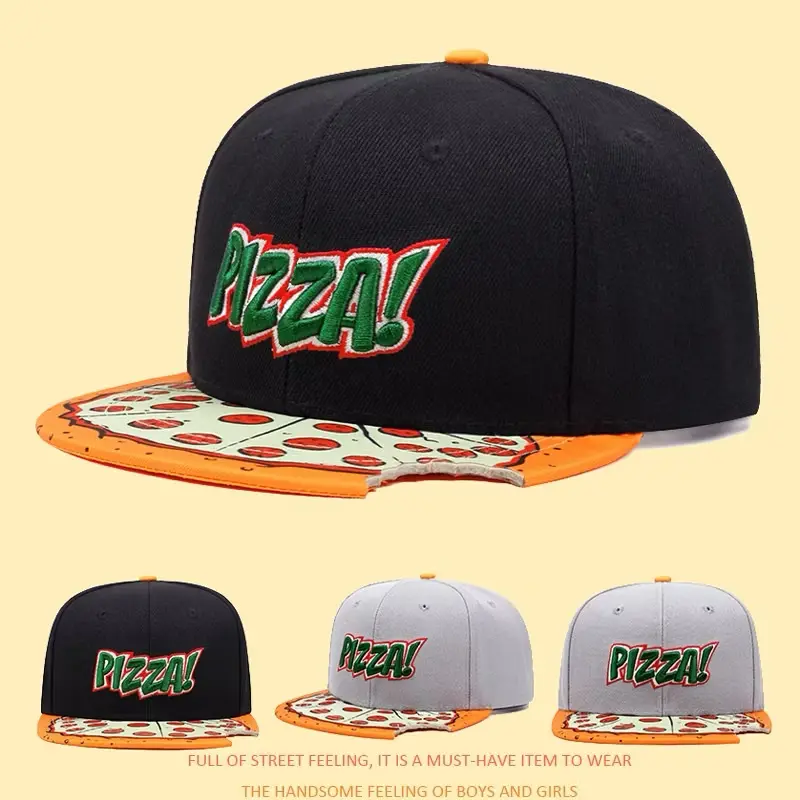 Cartoon Pizza Embroidery Flat Bill Hat, Hip Hop Snapback Hat for Men, Outdoor Sports, Dark Girl Design