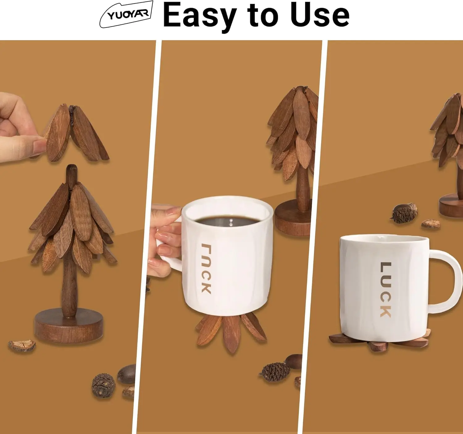 Yuoyar Coasters, Wooden Tree-Shaped sapele Wood Drink Coasters Set for Coffee Table, Kitchen Table Decor