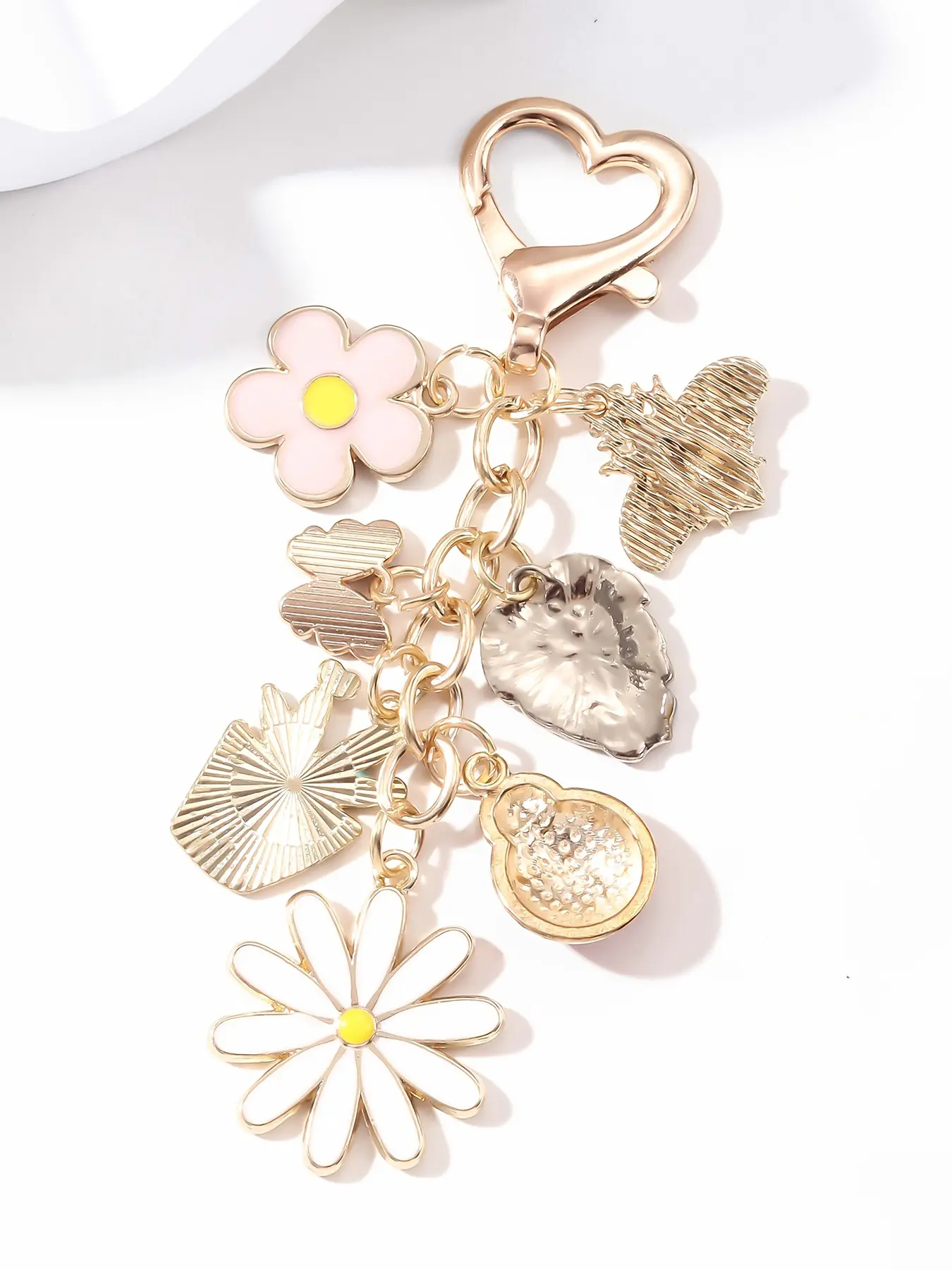 Fashion Heart Love Keychain Pendant, Imitation Pearl Camellia Letter Metal Accessory, Women's Bag Charm, All Seasons Cute Style