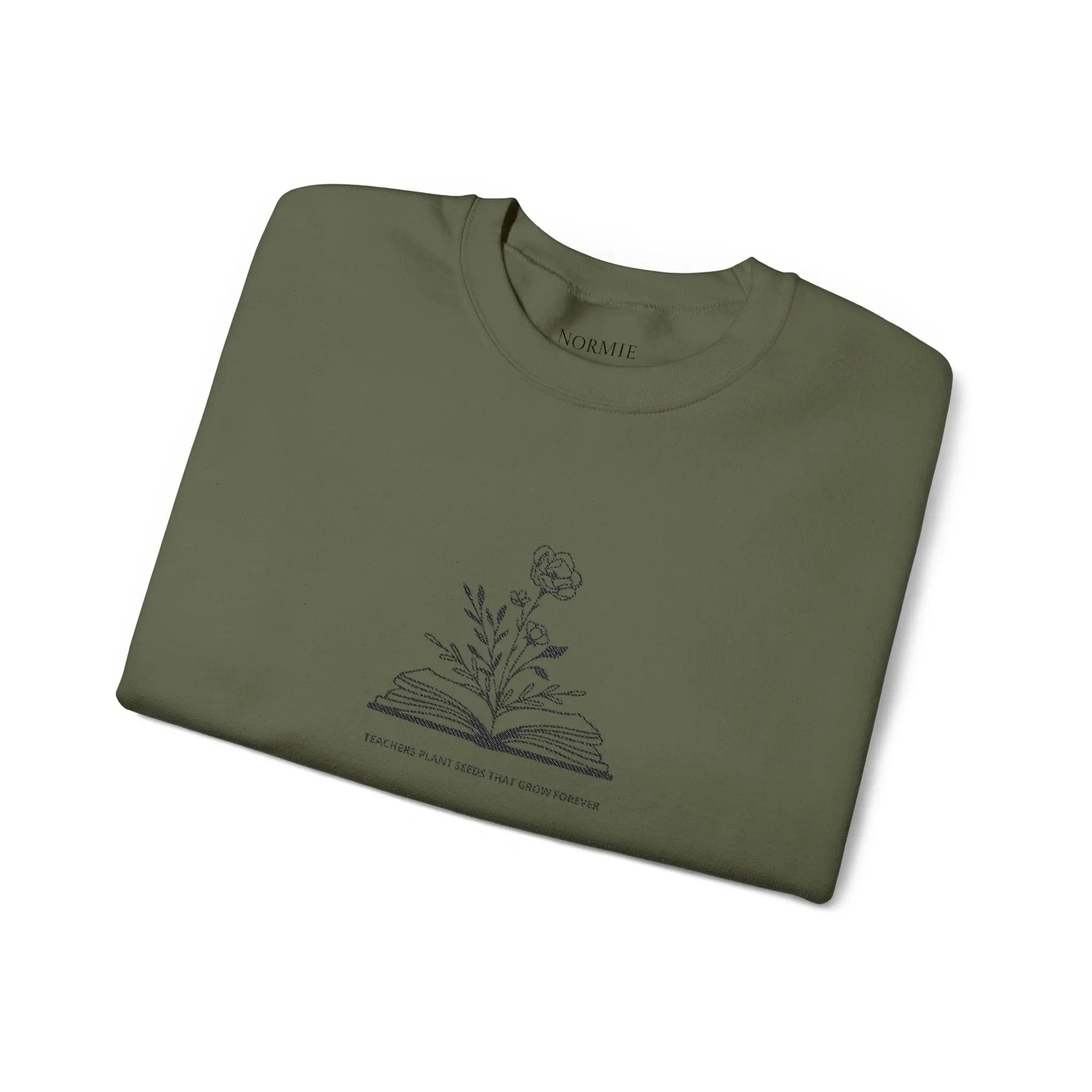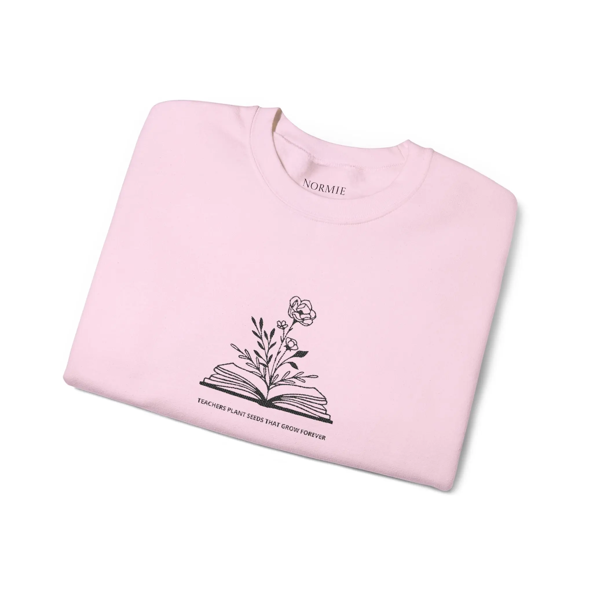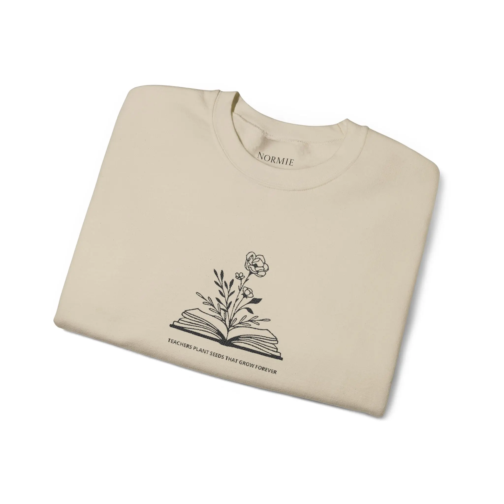 Soft, quiet, and thoughtfully made — this crewneck settles around your shoulders like a familiar reading chair. A delicate embroidered sketch of a blooming wildflower rising from an open book sits at the chest, whispering about slow mornings, margins full of notes, and pages turned by hand. The medium-weight cotton-poly blend keeps warmth without bulk, and the tubular knit body with ribbed collar holds its shape through washes. Wear it while curled up with a novel, on a cool library stroll, or layered under a coat for a coffee run. It’s designed for people who value gentle details: the subtle wrist or chest embroidery options, tear-away inner label, and OEKO-TEX dyes that reflect a quieter approach to how garments are made.