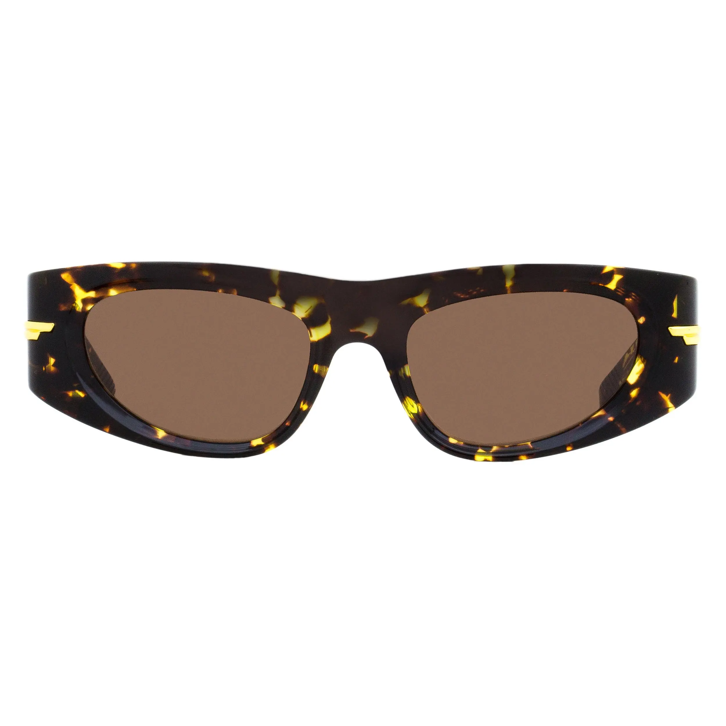 The Bottega Veneta 1044S Sunglasses feature a stunning cat-eye shape suitable for women. The Acetate frame is characterized by bold temples that prominently feature the brand's fringed ribbon metal emblem wrapped around the hinge. The house of Bottega Veneta is known for its impeccable craftmanship and high attention to detail. Providing 100% UV protection from the sun's harmful rays these sunglasses are functional in addition to being fashionable.