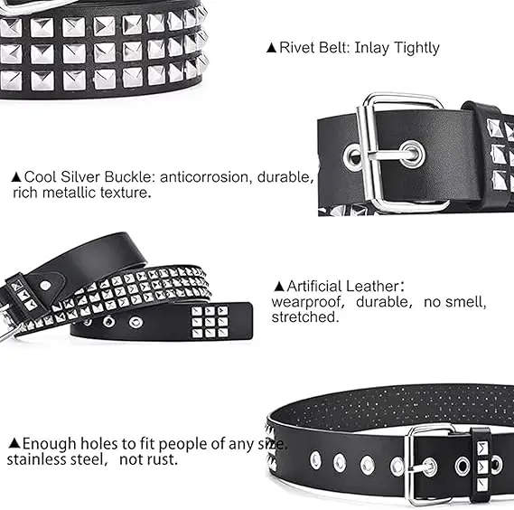 Black Studded Belt, PU Leather Statement Waist Belt with Silver Rivets, Fashion Accessory for Festival Concert Party Outfits