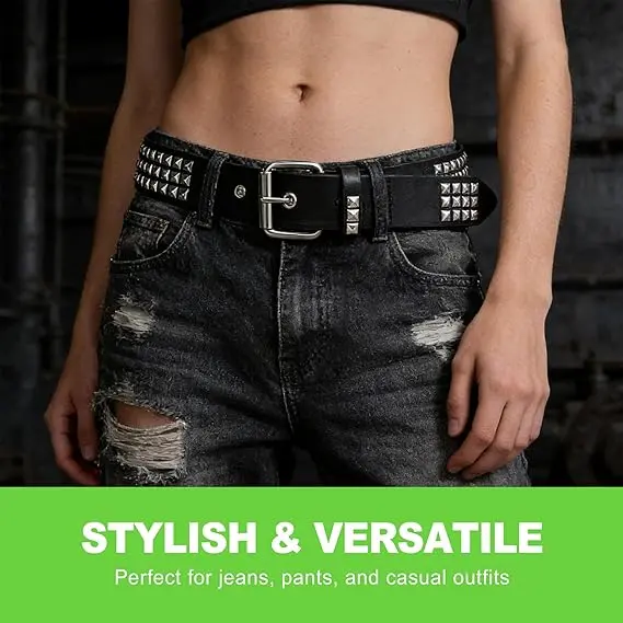 Add a bold fashion accent to your look with this black studded waist belt. The silver rivet design creates a striking contrast that makes your outfit feel sharper, more confident, and more styled. It is perfect for adding personality to simple jeans, skirts, dresses, and fitted tops.
