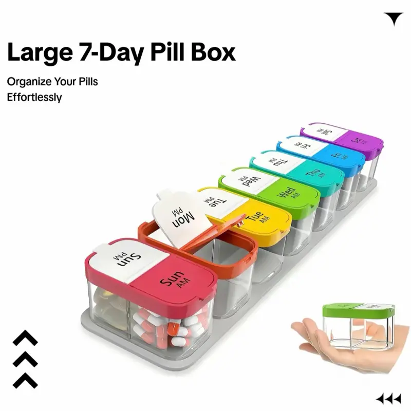 Daily Pill Storage Box, 7-Day Large-Capacity Morning and Afternoon Pill Organizer for Home, Office and Dormitory