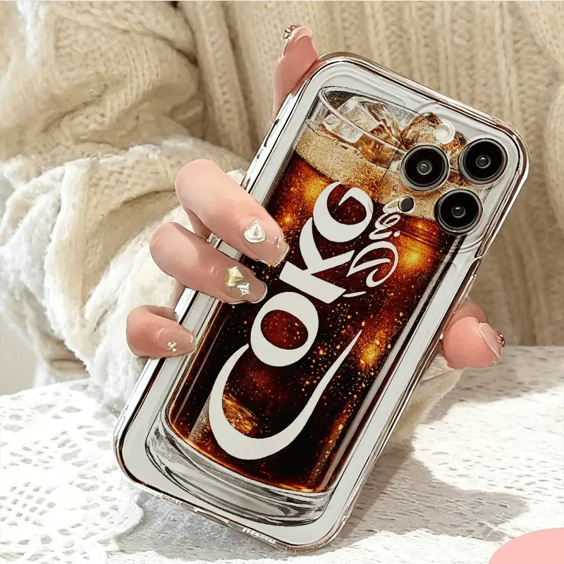 Coca-Cola Glass Texture Phone Case, Iconic Soda Pop Art Design, Shockproof Durable, Fits iPhone 17 Air 16e 15 14 13 Mini 12 11 Pro Max Xx Rx S Max 8 7 Plus, Cute Fashion Transparent Shell, Holiday Gift