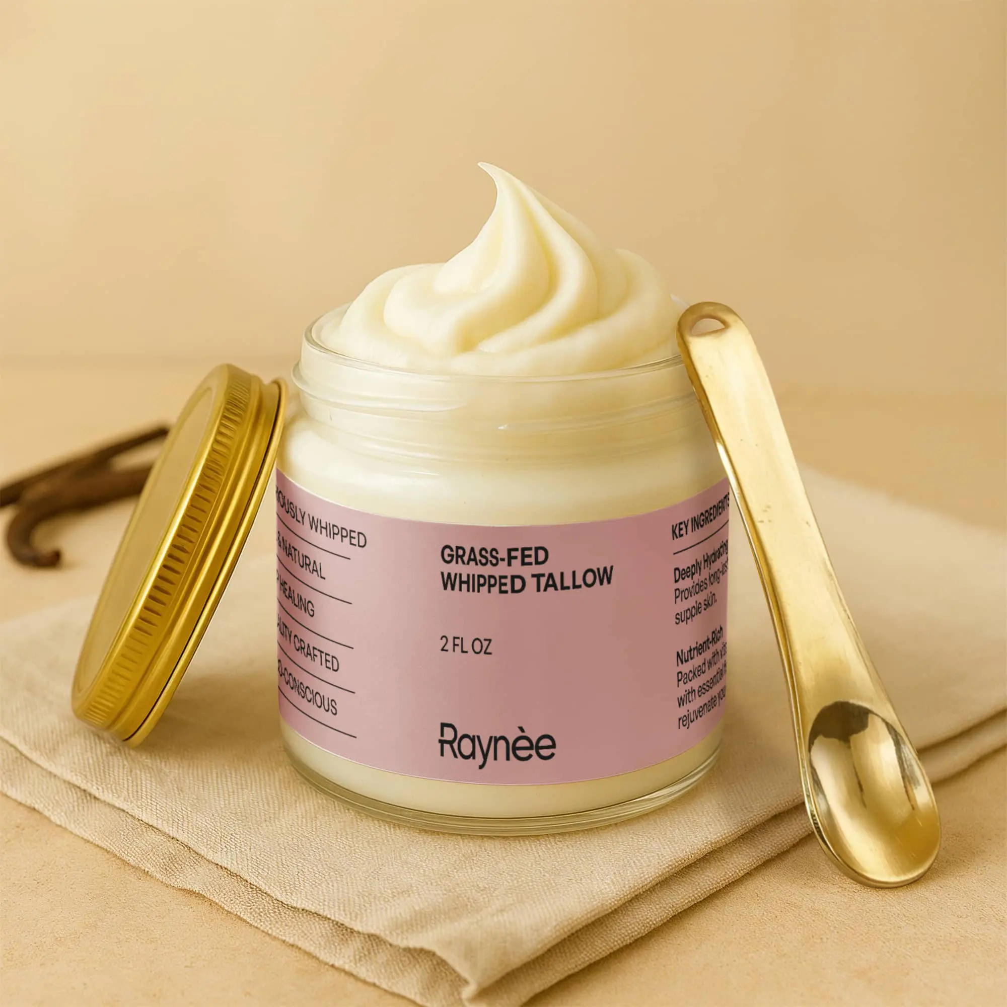 Experience the purity of nature with our Whipped Grass-Fed Tallow Balm with Vanilla Bean. Specially formulated with grass-fed tallow and infused with aromatic vanilla bean, this nourishing balm delivers deep hydration, soothes irritation, and promotes skin regeneration—all without synthetic additives.