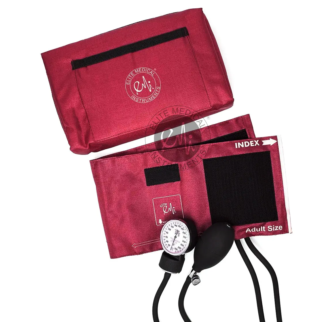 The Elite Medical Instruments (EBD-217) Professional Deluxe Aneroid Sphygmomanometer is a manual blood pressure monitor designed for precise measurements. The set includes a durable nylon adult cuff, a precision-calibrated manometer gauge, and a standard inflation bulb with a deluxe valve. Suitable for use in medical environments, it provides essential tools for accurate blood pressure assessment.