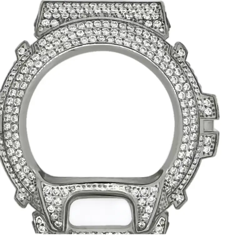 Custom Iced Out VVS alternative Watch Bezel Case for Inspired G-Shocks Models with Sparkling Crystal Accents and Sleek Design