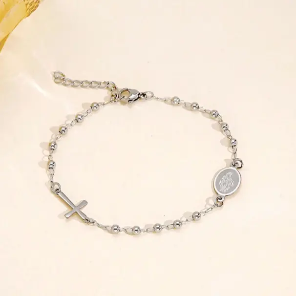This bracelet boasts a cross design, perfect for those who appreciate simplicity and elegance. Crafted from stainless steel, it ensures durability and a sleek look. The bracelet measures 17+3cm in length and weighs 2.2g, making it lightweight and comfortable for daily use. It combines style with functionality, ideal for everyday wear.