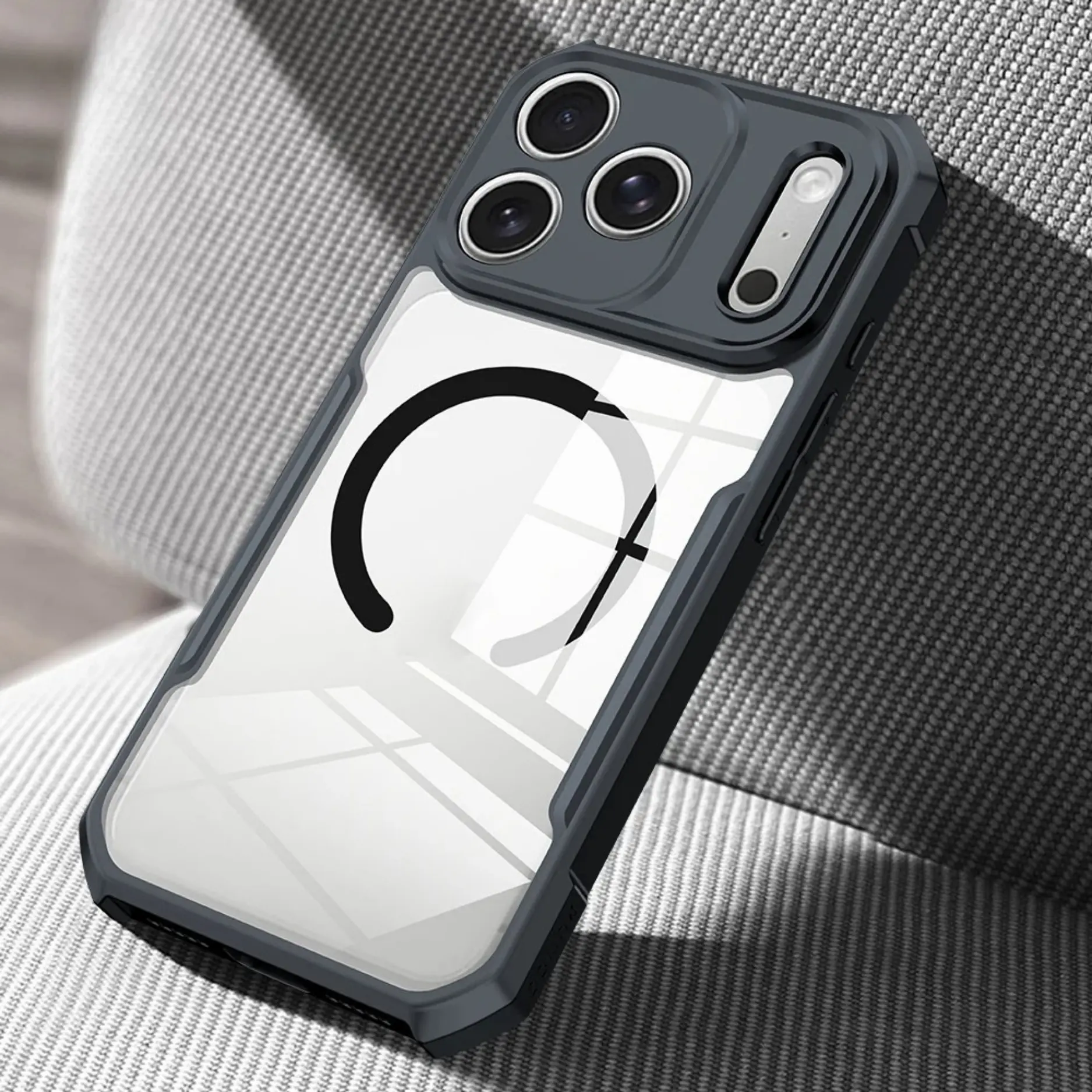This clear case combines airbag corner protection with a durable acrylic and PC back panel that resists yellowing over time. Raised edges (0.8mm) protect the camera lens and screen from scratches when placed on flat surfaces. The flexible rubber bumper absorbs impact from drops while making the case easy to install and remove. Precise cutouts ensure full access to buttons, ports, and the fingerprint sensor. Magnetic compatibility supports MagSafe accessories. Available for iPhone 17, iPhone 17 Air, iPhone 17 Pro, and iPhone 17 Pro Max. A slim, protective case that keeps your phone visible while guarding against everyday bumps and falls.