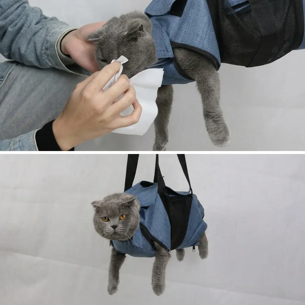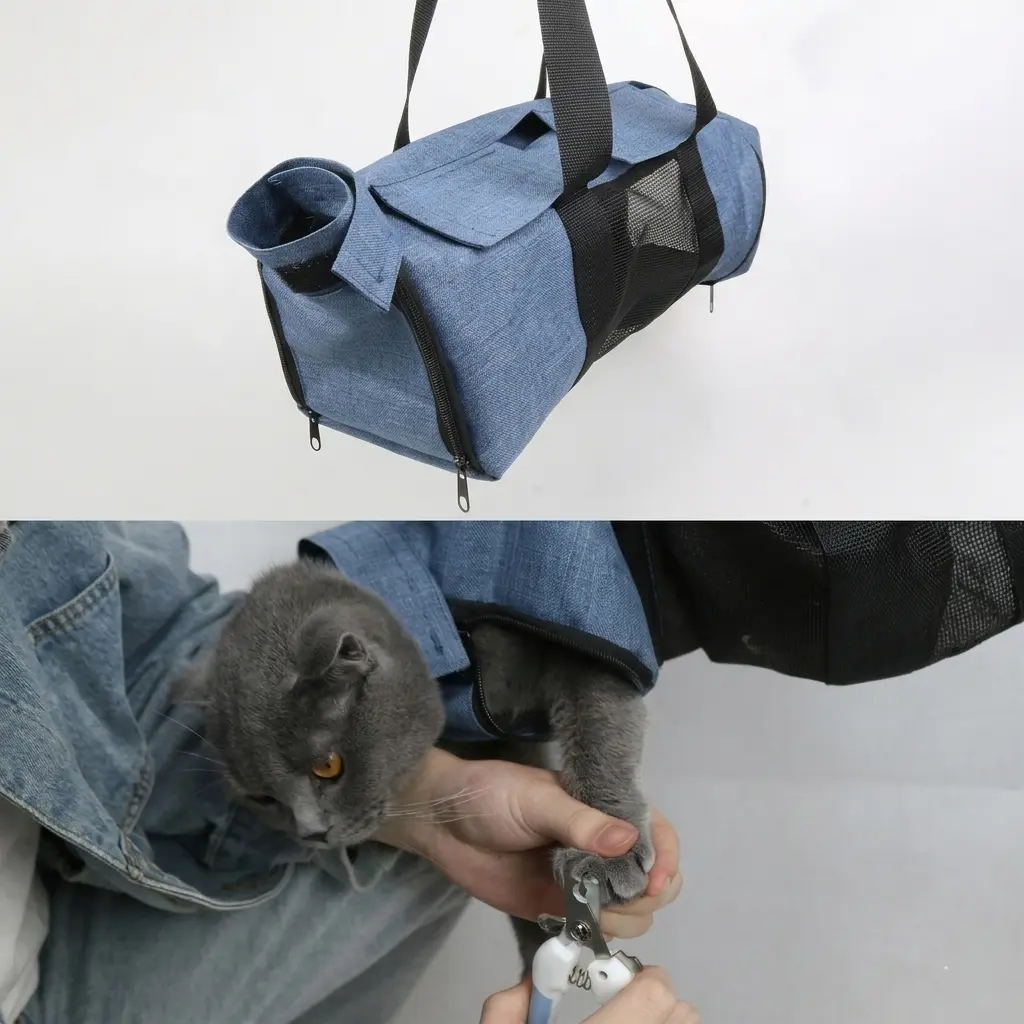 This grooming hammock is ideal for small dogs and cats. It features an anti-scratch and bite design, ensuring your pet's safety during baths and beauty treatments. The Oxford cat bag is perfect for outings, providing a secure and comfortable experience.