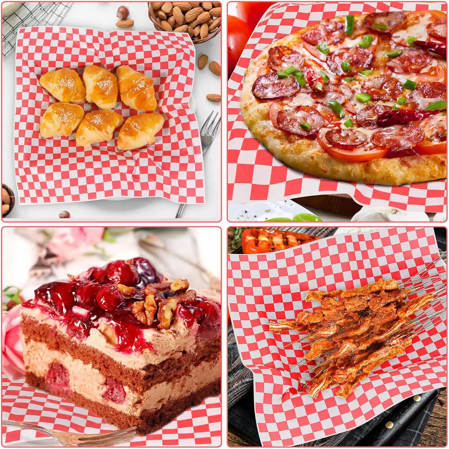 deli paper sheets, sandwich wrapping paper, grease-resistant wax paper, food basket liners, checkered wax paper, 12x12 food paper, picnic food wrap, restaurant supplies, disposable paper sheets, party food paper
