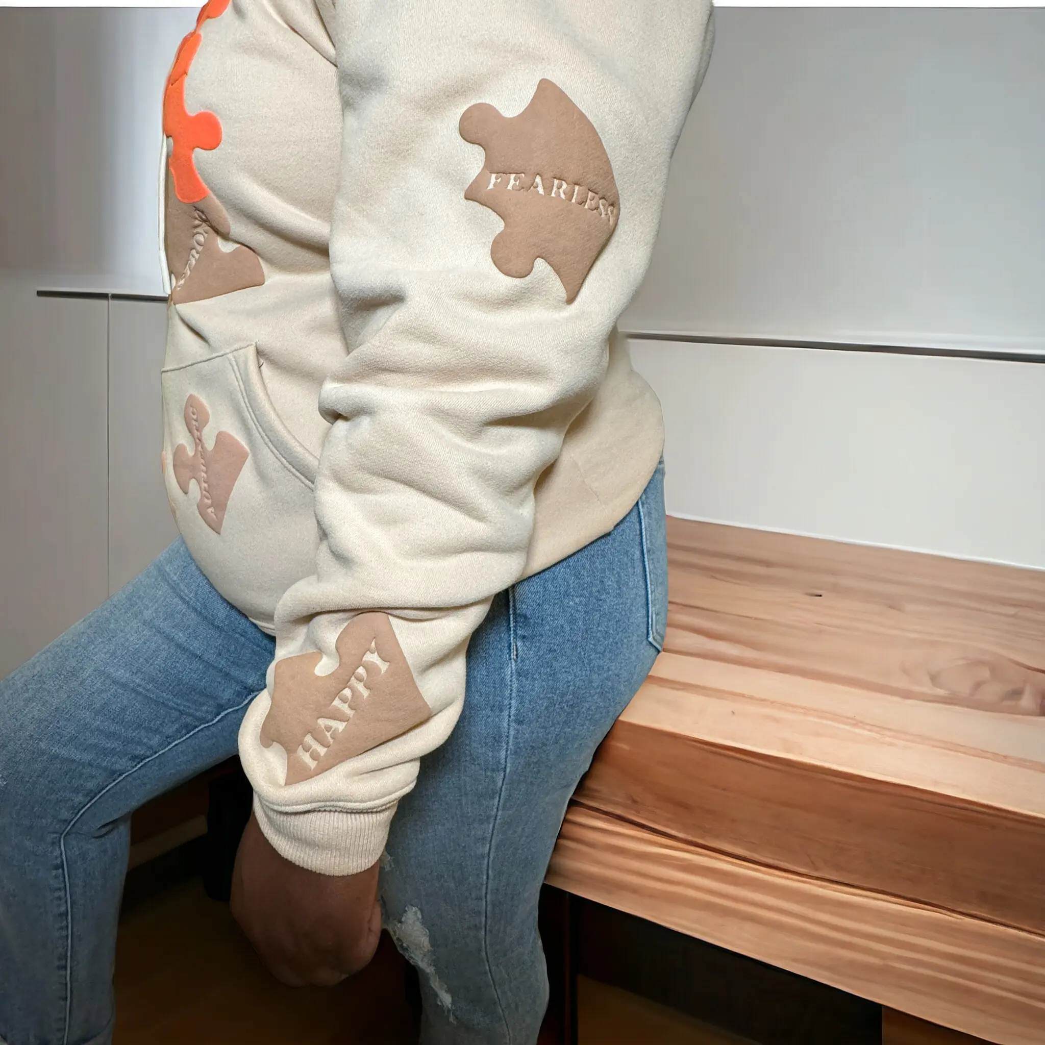 Step into your power with the Piecing It Together Hoodie Puff Print Tan. Designed with affirmation puzzle pieces, this hoodie reminds you that every part of your story matters. The puff print looks amazing in person so you can feel confident and cozy all day. Made with premium fleece for a plush fit, it’s the perfect blend of comfort and meaning. Want a looser vibe? Go up a size. Wear it proudly and celebrate the unique you.