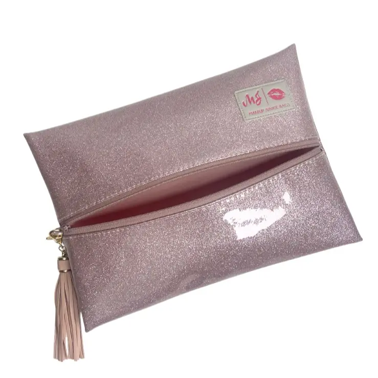 Handmade in Texas, the Stardust bag is a game-changer. Its patented lay-flat design keeps toiletries and makeup organized. Crafted from luxe, brilliant, and smooth glitter material; it's built to last. As seen on Shark Tank, this bag is perfect for travel, gym, or daily use.