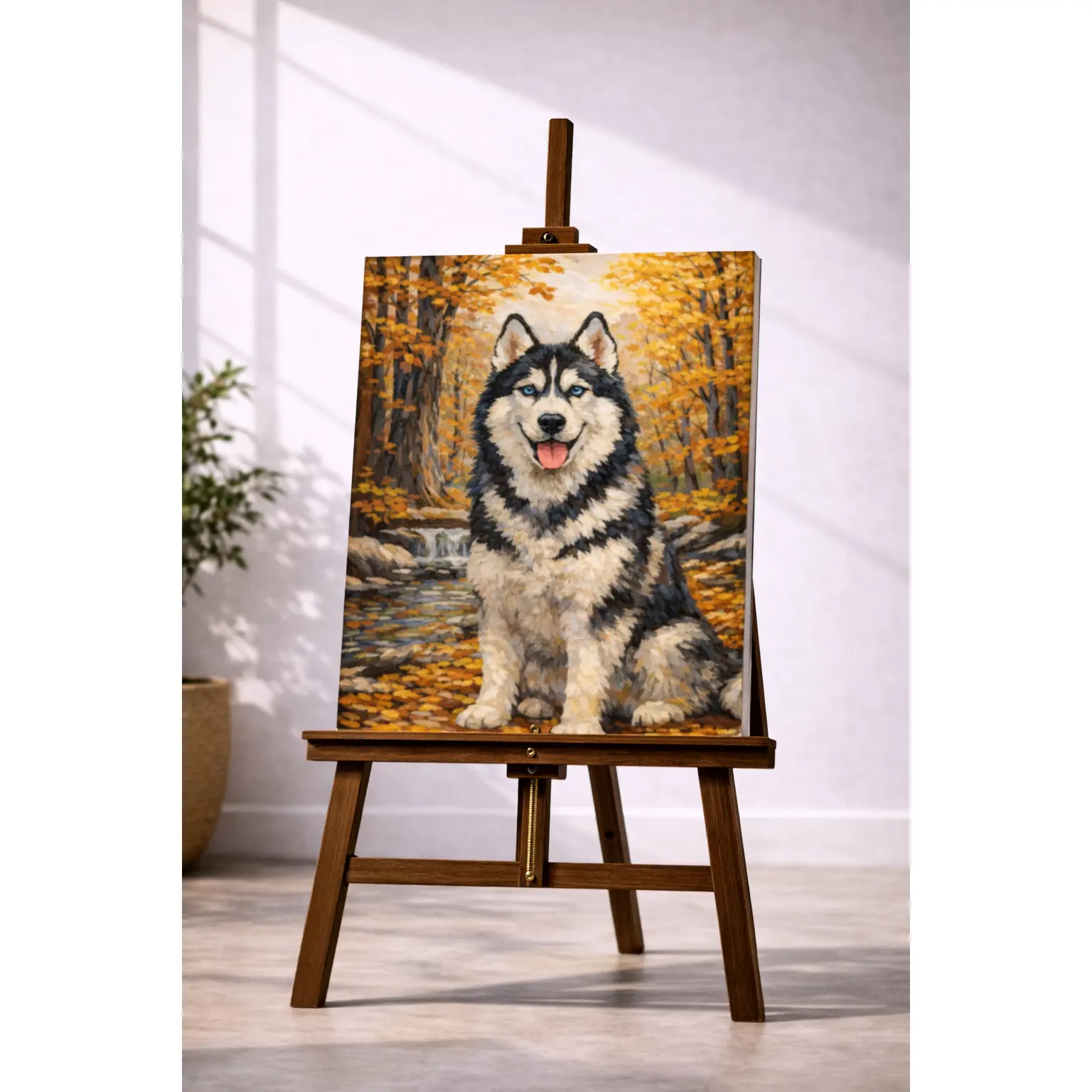 Bring wildlife to life with the Woodland Husky paint by numbers kit. Perfect for artists of all skill levels, this premium DIY art set features a stunning husky portrait set against a serene forest backdrop.