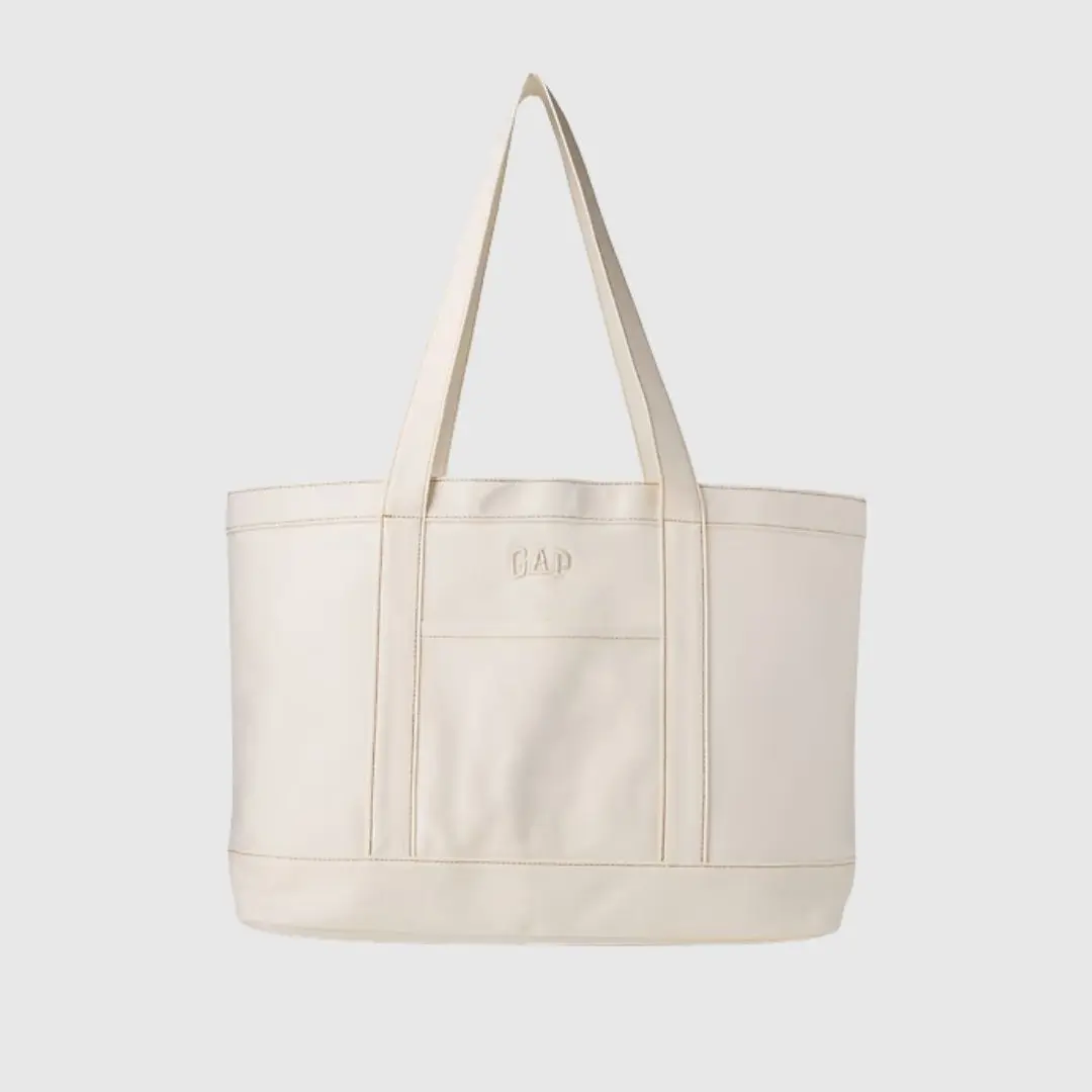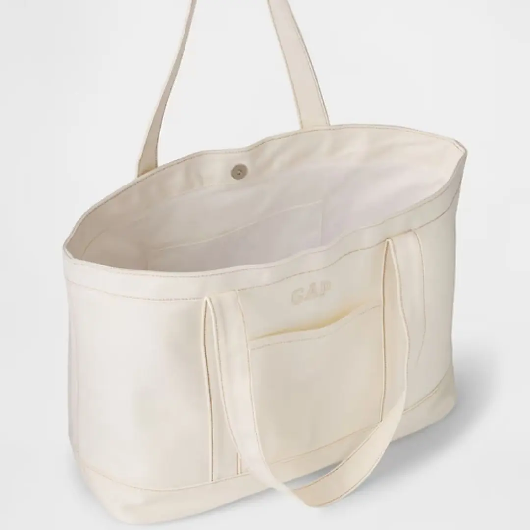 This tote is part of Gap's Washwell program, using 20% less water. Over a billion liters saved since 2016. Made in a factory supporting gender equality and women's empowerment through RISE and P.A.C.E. programs.