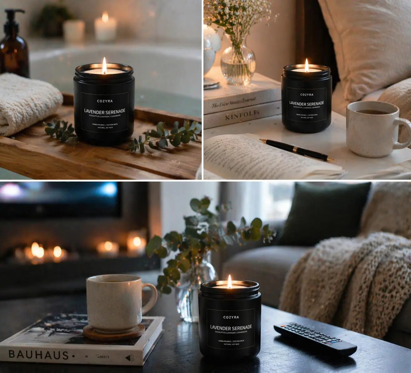 COZYRA Lavender Serenade Candle - Hand Poured with Cotton Wick & Natural Soy Wax for Pure Scent - Eco-Friendly & Subtle Fragrance