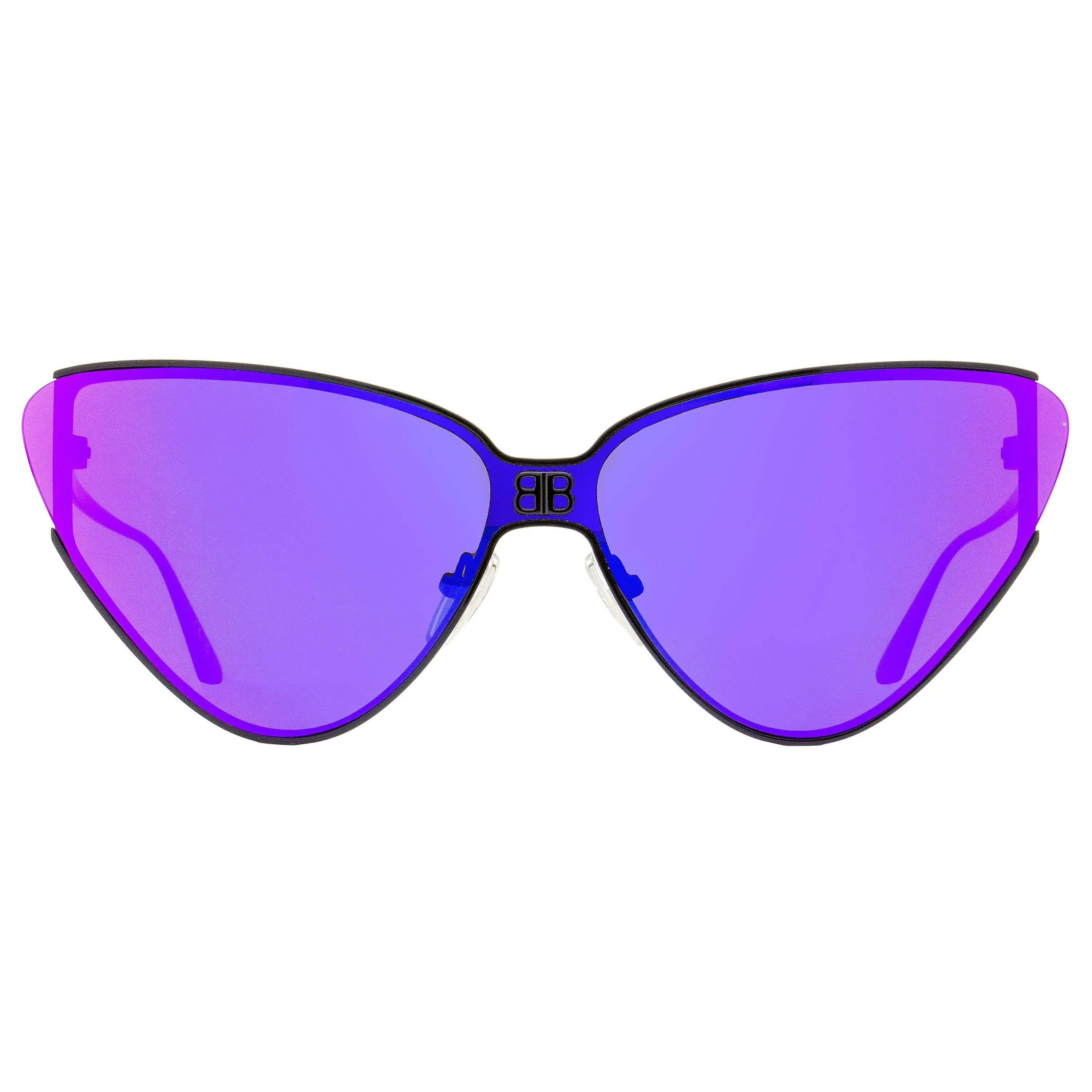 The Balenciaga BB0191S Sunglasses feature a bold cat-eye profile suitable for women. The metal frame supports a dramatic shield lens front with iconic BB logo at the bridge and adjustable nose pads that provide for an ideal fit. Balenciaga is famous for it bold architectural designs and is much admired by fashion insiders for being on the cutting edge. Providing 100% UV protection from the sun's harmful rays these sunglasses are functional in addition to being fashionable.