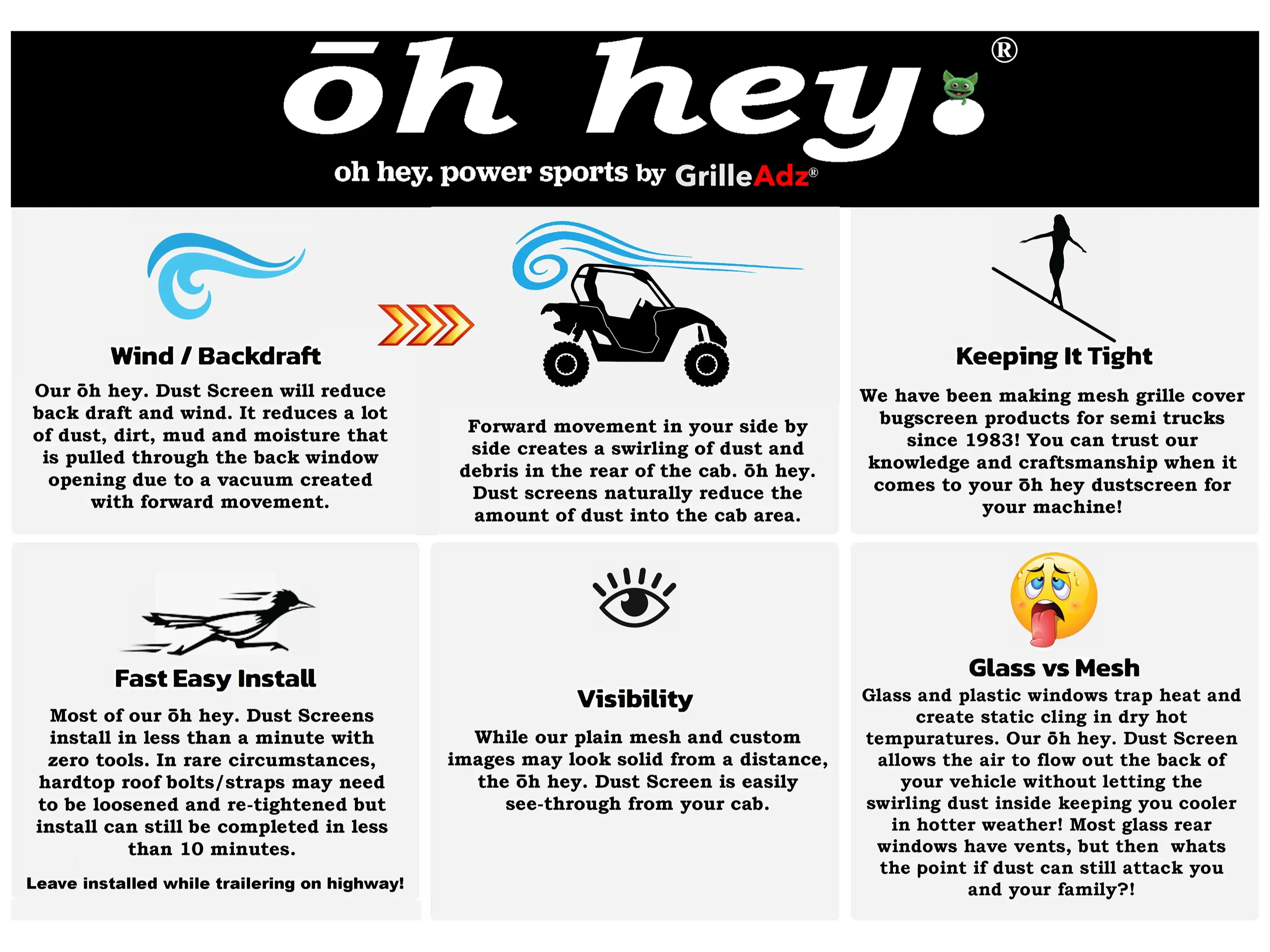 oh hey Powersports Rear Dustscreen and UV Screen for Yamaha Wolverine RMAX 2 and 4 seater