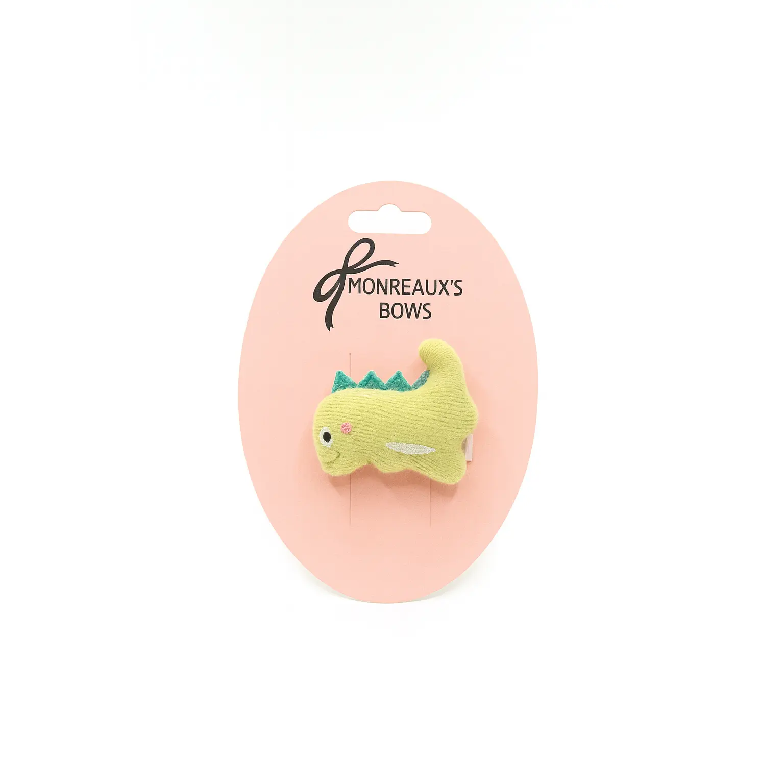 The Sunny Dino Buddy Clip brings cheerful prehistoric fun to every hairstyle! This plush yellow dinosaur features teal felt spikes, a sweet embroidered face, and soft fuzzy texture.