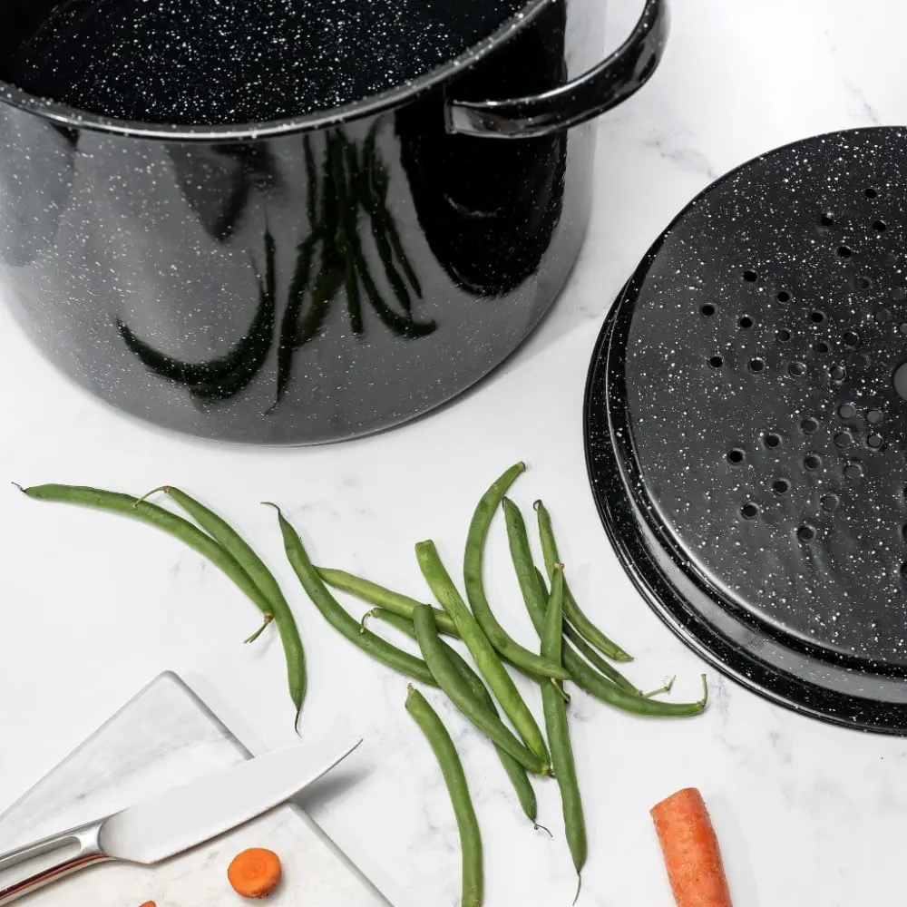 Granite-Ware® Steamer & Stock Pot 15.5 Quart - 3 PC. This product made of enamel on steel cooks faster, cleans easier, lasts a lifetime. Dishwasher-safe cookware. Great for tamales, seafood, vegetables, soups, Menudo, stews, and more. It is an undeniable fact that home appliances make life comfortable. Browse our wide variety of hardware, electrical and electronic items keeping quality and reliability in mind. Our products are easy to use and make your everyday life much convenient and comfortable.