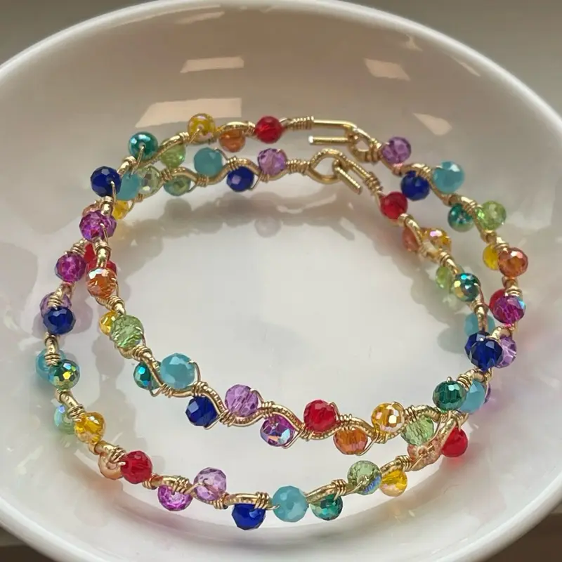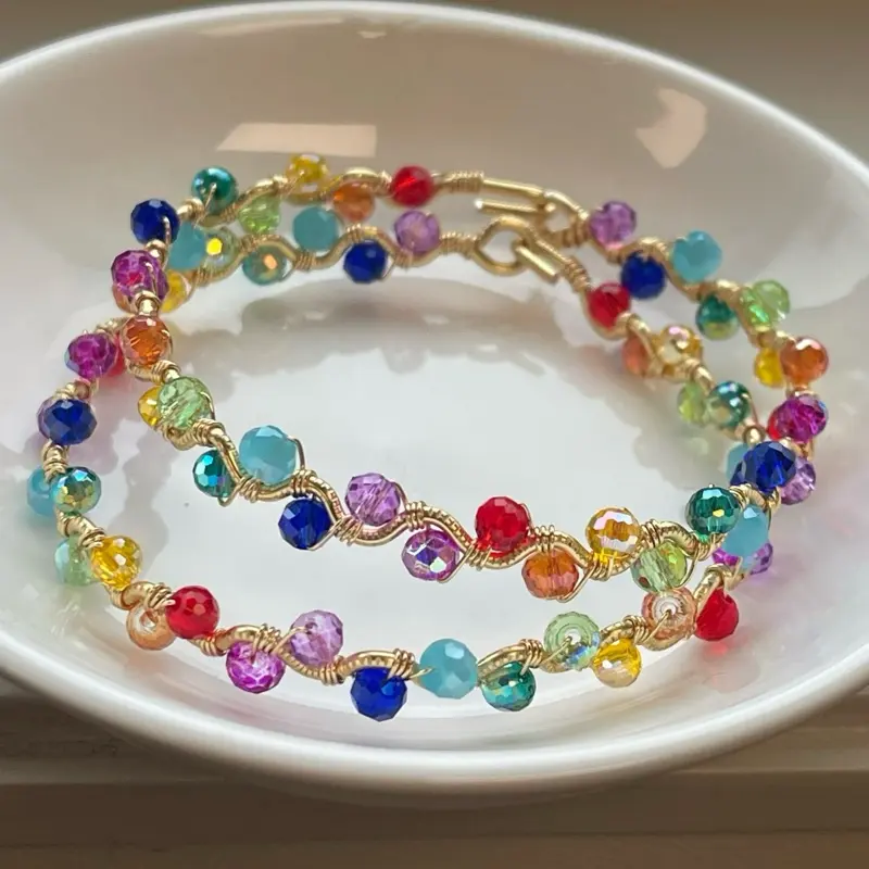 Choose from two bangle sizes and three wire colors. Stones will be set in same order as in photos, as a rainbow.