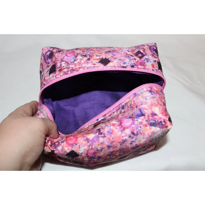 The Pinkalicious Bag is pure fun and feminine charm all wrapped up in one handmade piece. Bursting with vibrant pinks, purples, and glittering jewel tones, this bag sparkles with personality and confidence. Each stitch is lovingly crafted, making it both a statement piece and a reliable everyday companion. This bag features a light pink zipper.