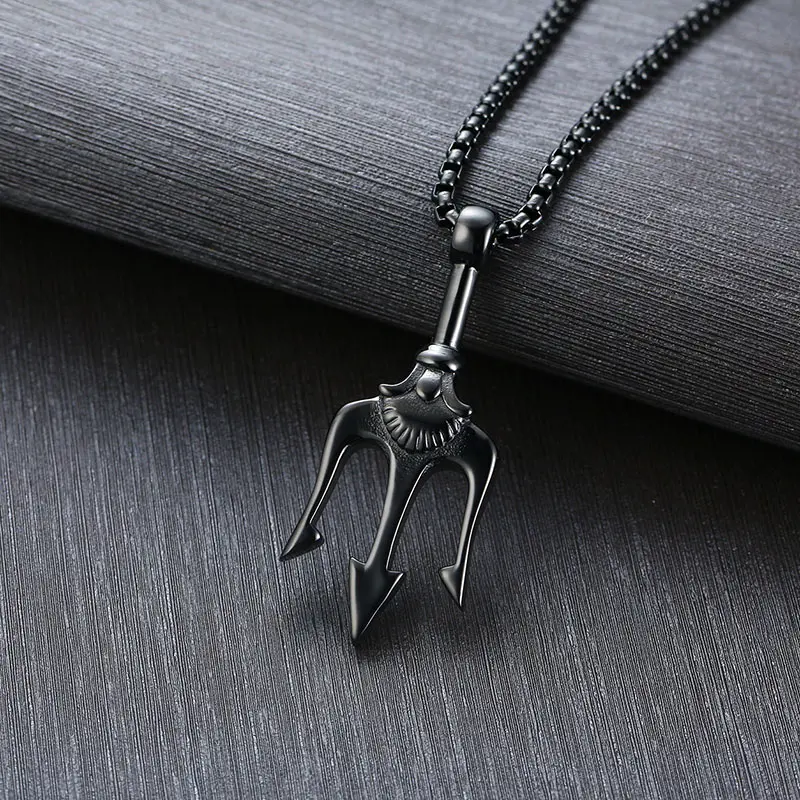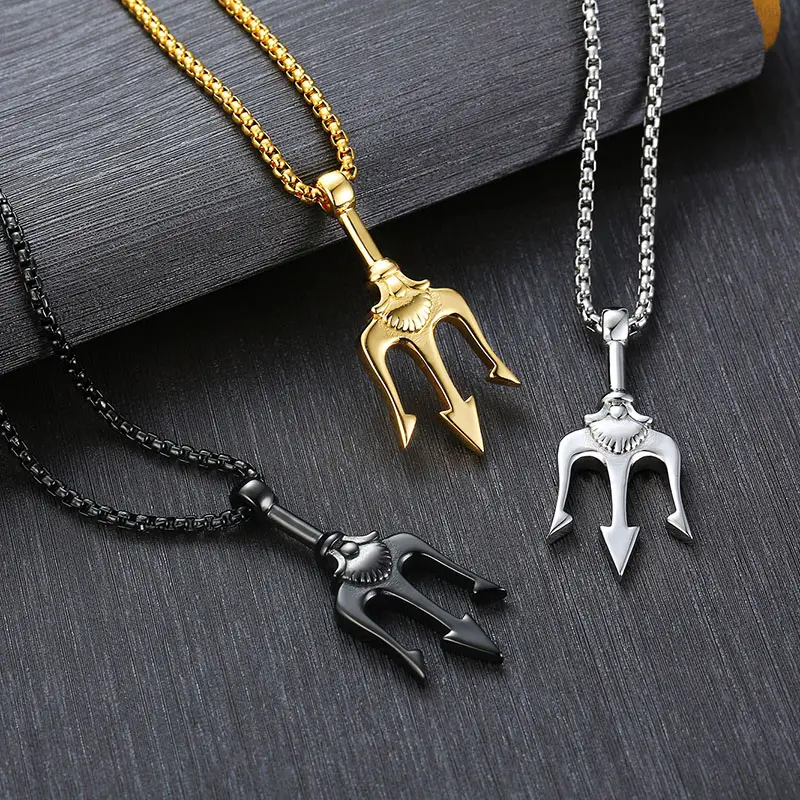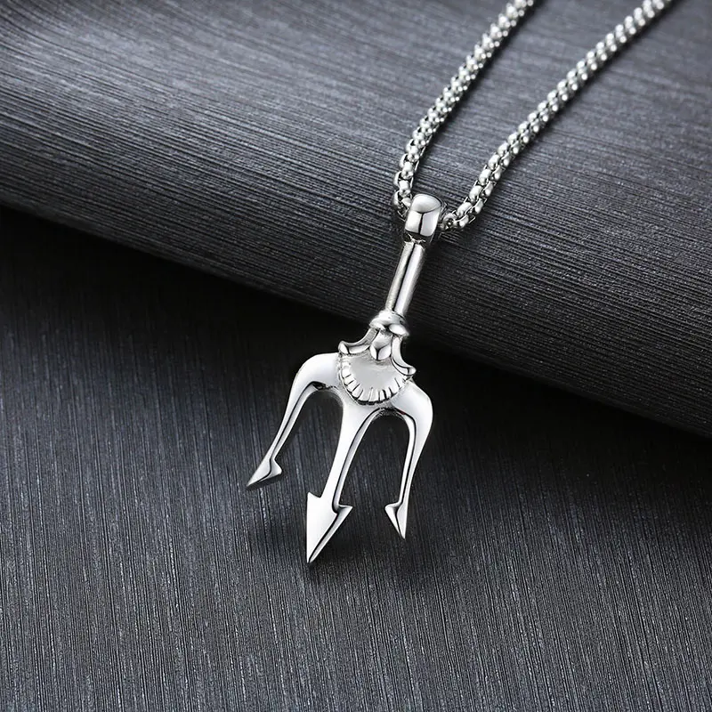 Neptune's Trident Necklace Retro Mythical Sea King Poseidon Trident Harpoon Pendant Necklace Men's Fashion Trend Cool Jewelry