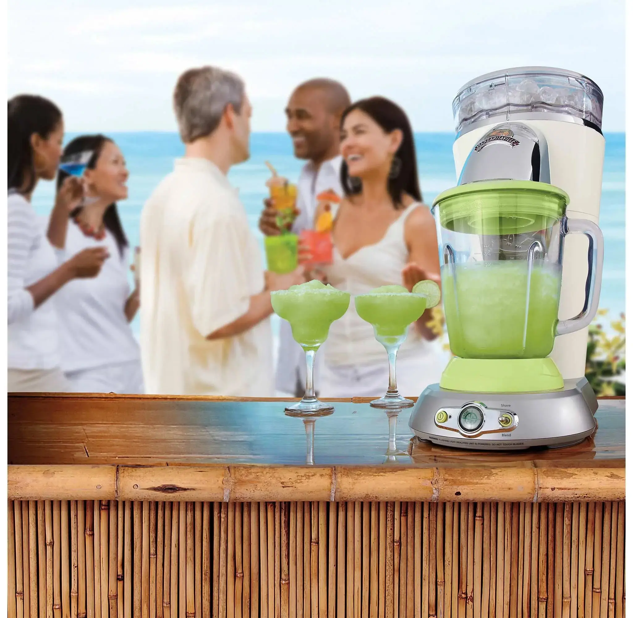 It's time to party! At the touch of a button, this Frozen Drink Maker creates a pitcherful of your favorite frozen drinks quickly and easily. The Shave-N-Blend control automatically makes a perfect, 36 oz pitcher of margaritas or other delicious frozen beverages in one simple step, mixing the right ratio of ice with your ingredients. With over 400 watts of power, it keeps the party going by blending pitcher after pitcher of your favorite drinks.