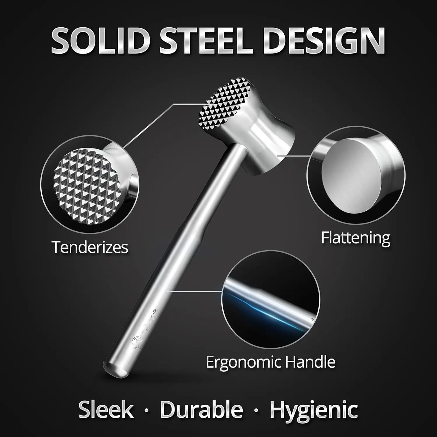 ·MULTIPURPOSE KITCHEN TOOL - Perfect for tenderizing beef, pork, poultry — and even crushing garlic, cracking nuts, or flattening cutlets. A go-to tool for home kitchens and BBQ lovers alike.