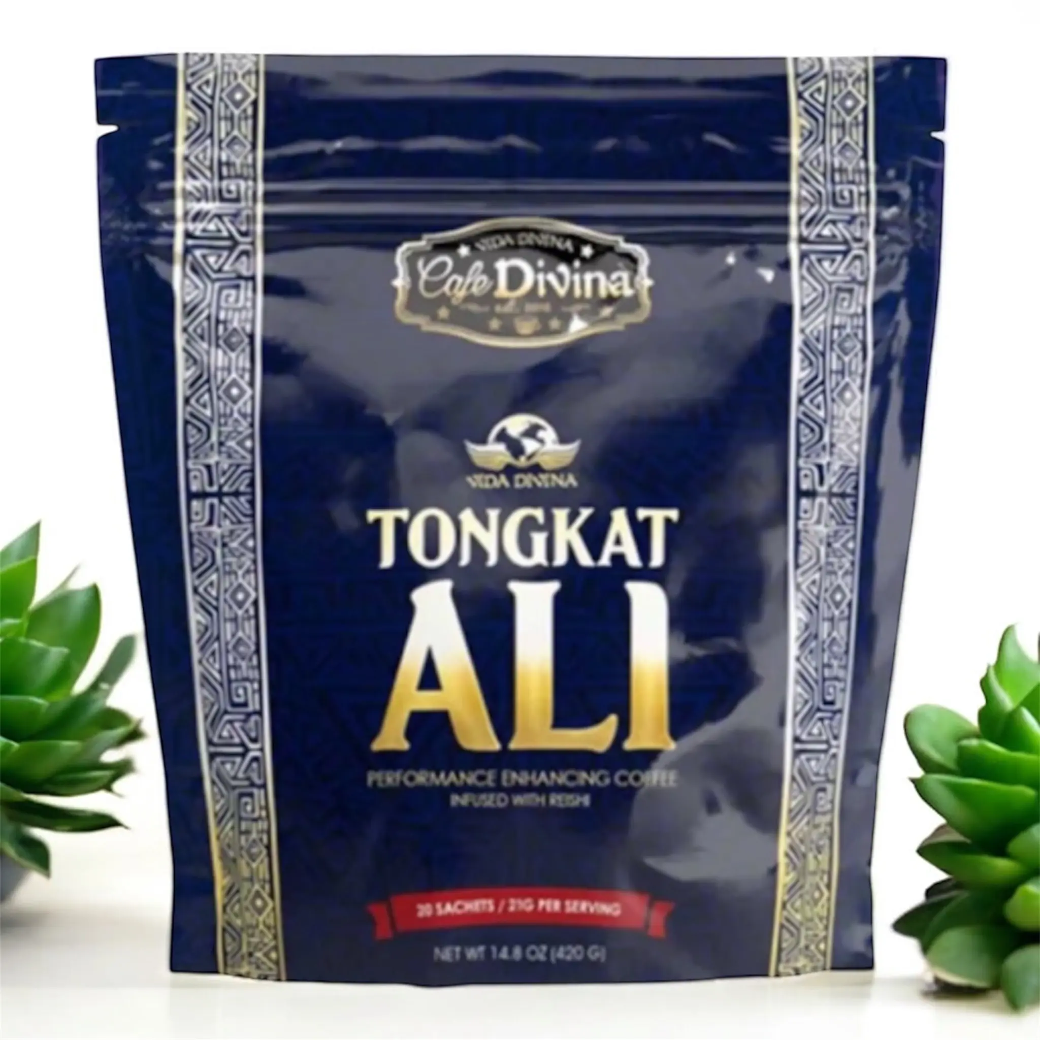 Vida Divina Tongkat Ali Herbal Supplement is a natural coffee infused with resin. Each serving contains 21g, packed in 20 convenient sachets. Perfect for those seeking a performance-enhancing beverage. This coffee blend combines the benefits of Tongkat Ali with the invigorating effects of coffee. Ideal for daily use, it offers a unique way to enhance your energy levels.