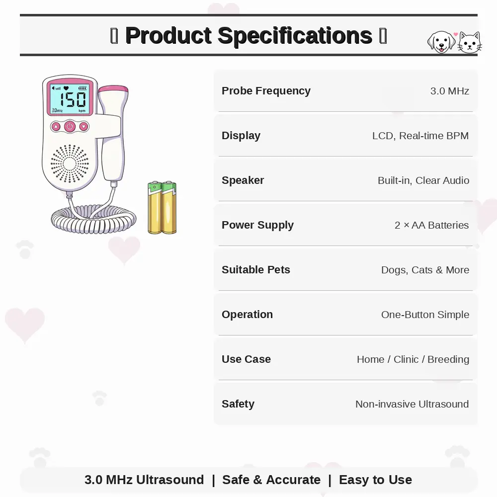 Pet Fetal Doppler Handheld Ultrasound Heartbeat Monitor for Pregnant Dogs and Cats Women