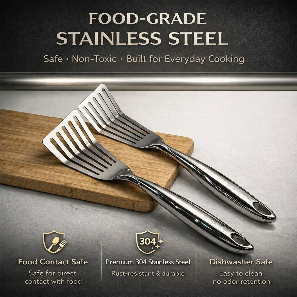 ·Versatile & Dishwasher Safe Ideal for fish, seafood, eggs, crepes, burgers, and more. Safe for dishwasher cleaning and suitable for stainless steel and cast iron cookware.