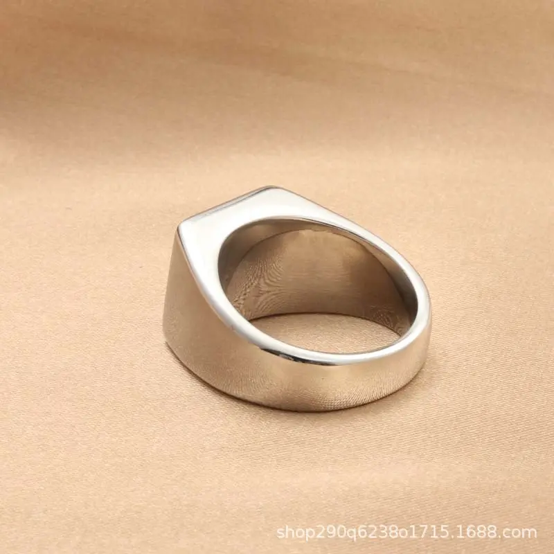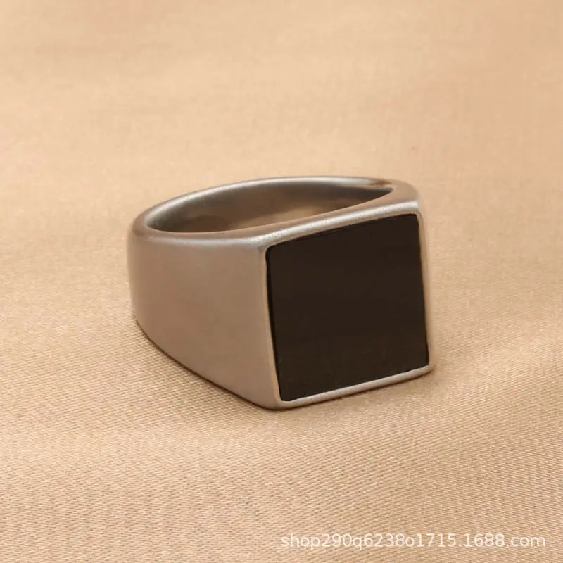 European and American jewelry titanium steel black glass ring, retro trendy men punk stainless steel black gemstone square ring