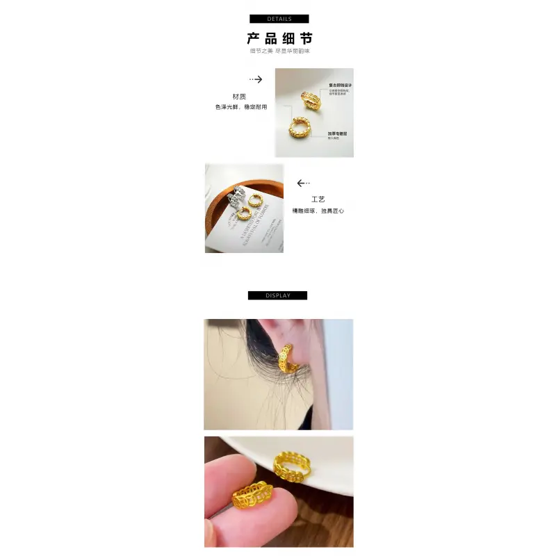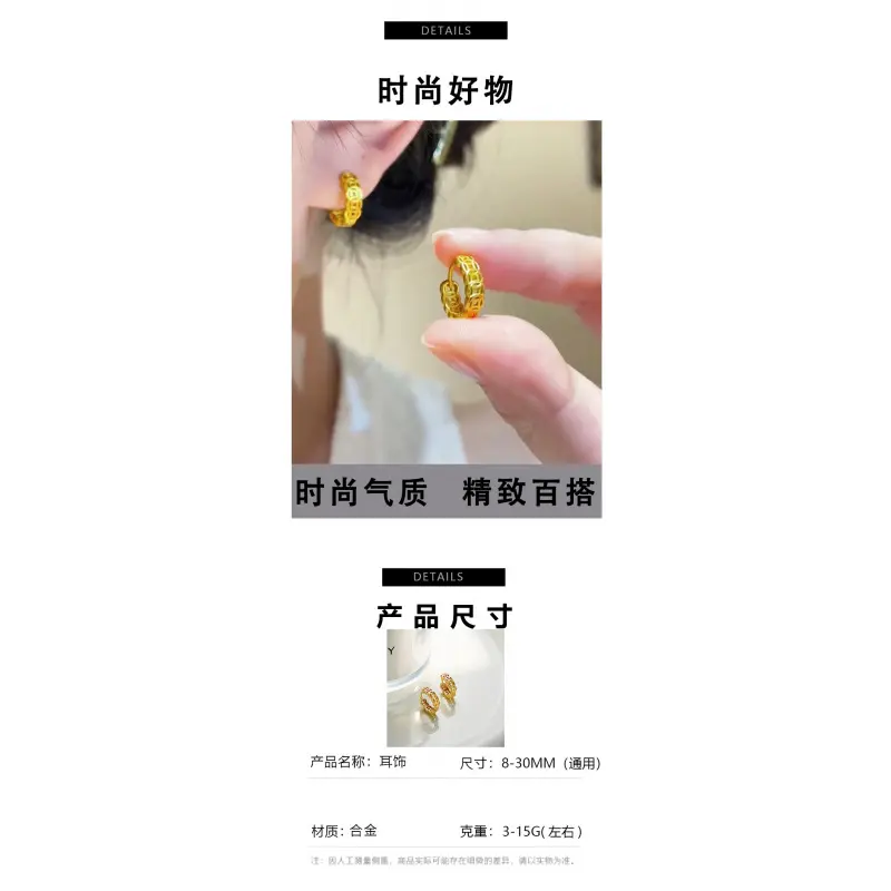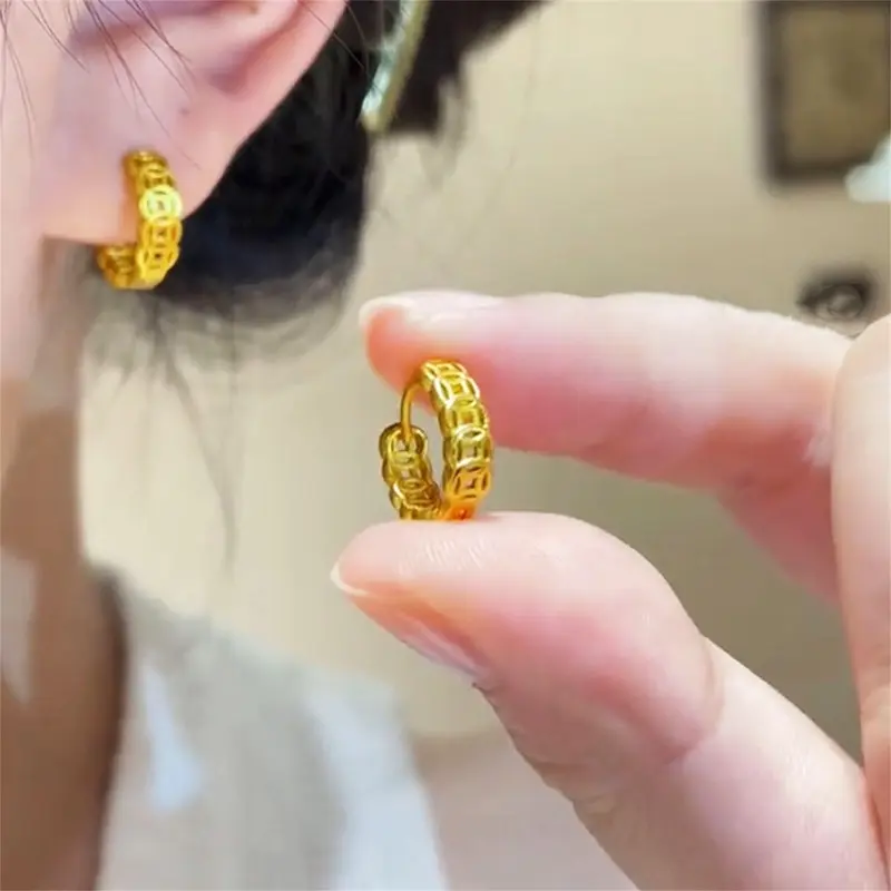 European and American retro style money earrings, versatile earrings, new fashionable plated hollowed-out copper coin ear buckles