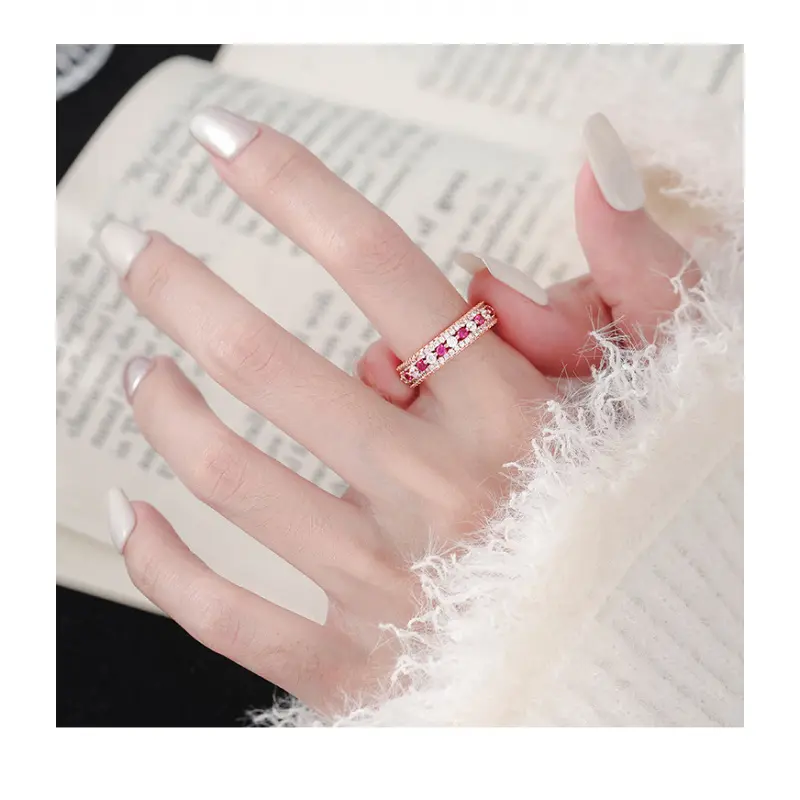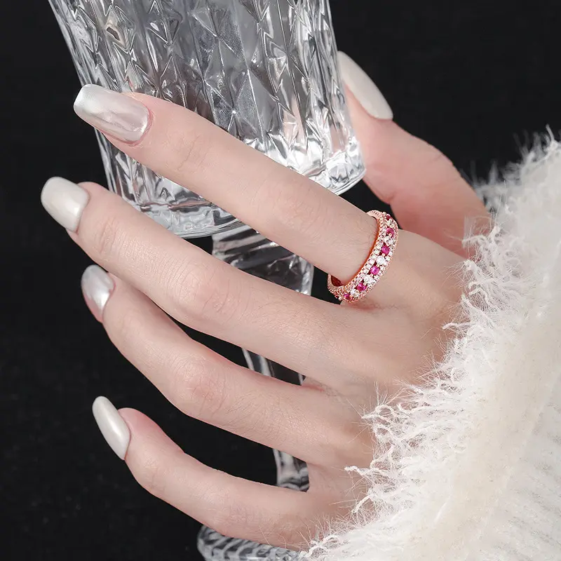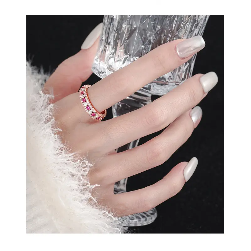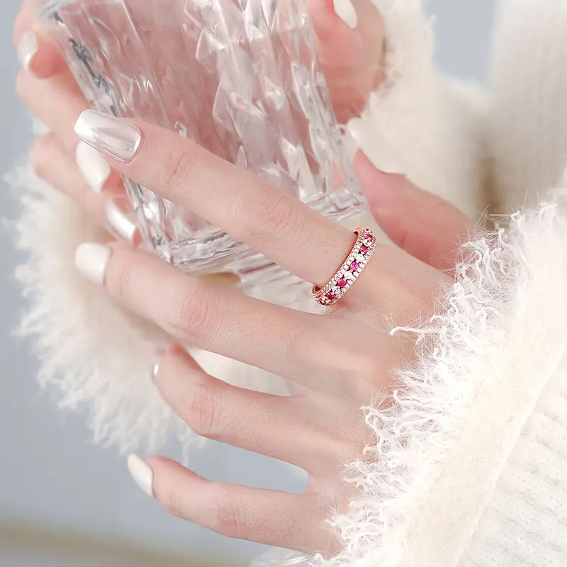 The new pink diamond ring for young girls with white diamonds and a full ring of pink diamonds exudes an exquisite and high-end feel