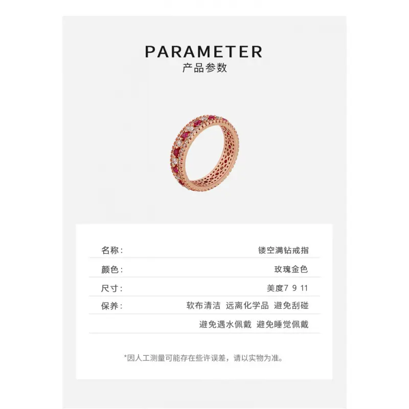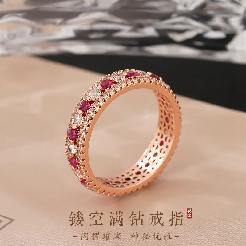 Hollowed-out full-diamond ring in rose gold color