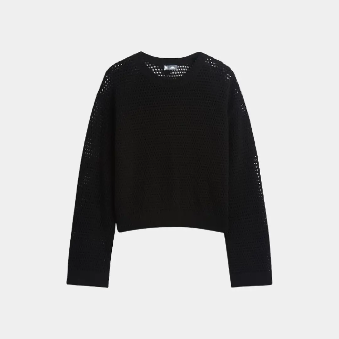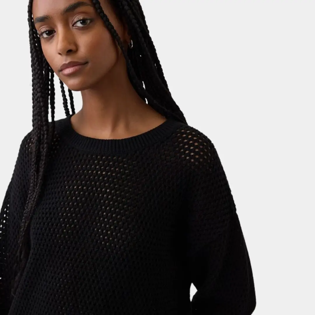 ·Soft cotton crochet sweater with a crewneck design.