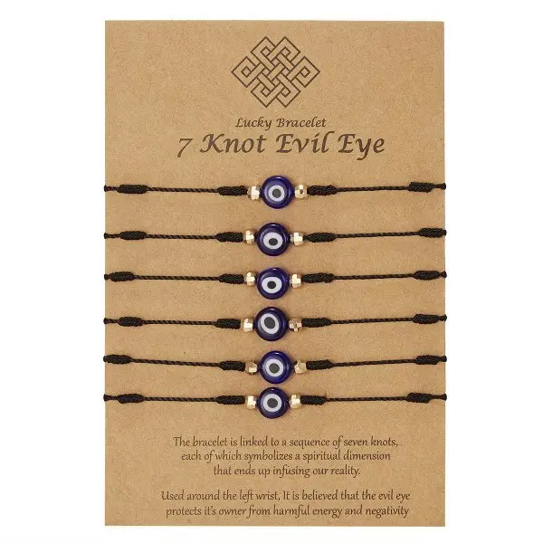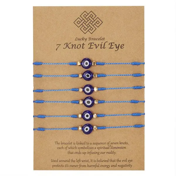 New 7-knot Evil Eye Bracelet 6 Pack Blue Eye Paper Card Bracelet Braided Adjustable Bracelet