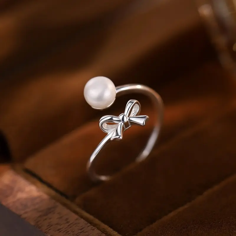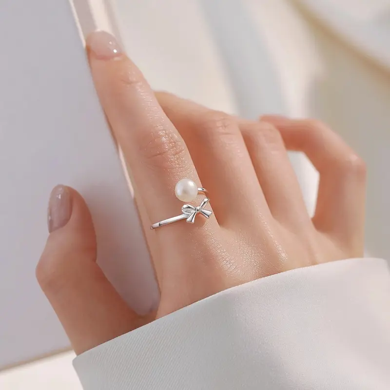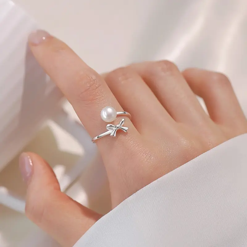 This minimalist ring features a delicate bowknot design, perfect for the index finger. The open band ensures a comfortable and adjustable fit, making it a versatile accessory. Ideal for those who appreciate premium yet understated jewelry.